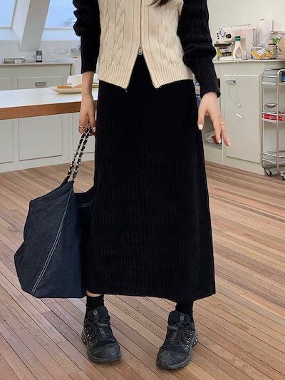 プリーツスカート スカート コーデュロイ マキシスカート プリーツスカート セミロング マーメイドスカート タイトスカート ハイウエスト 無地