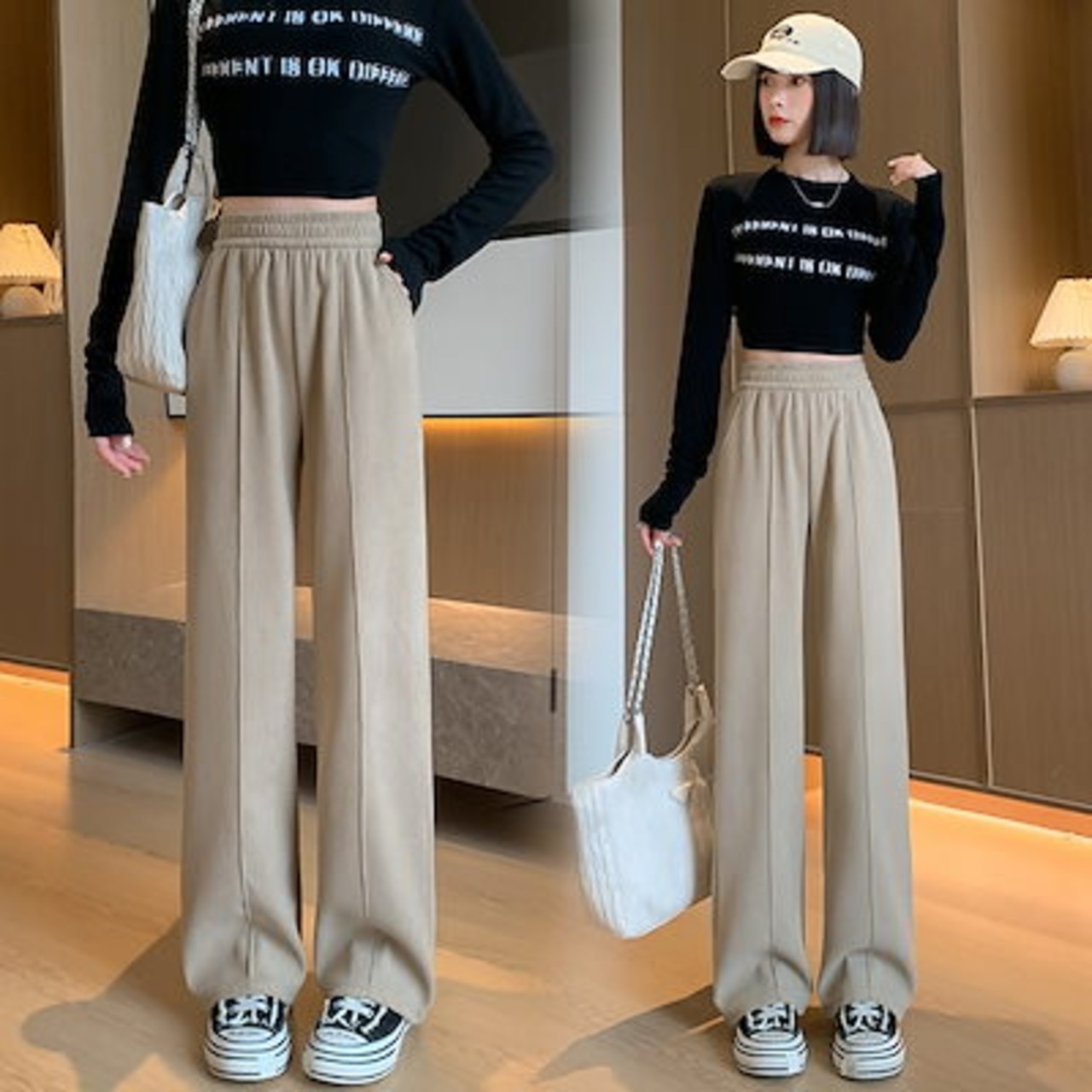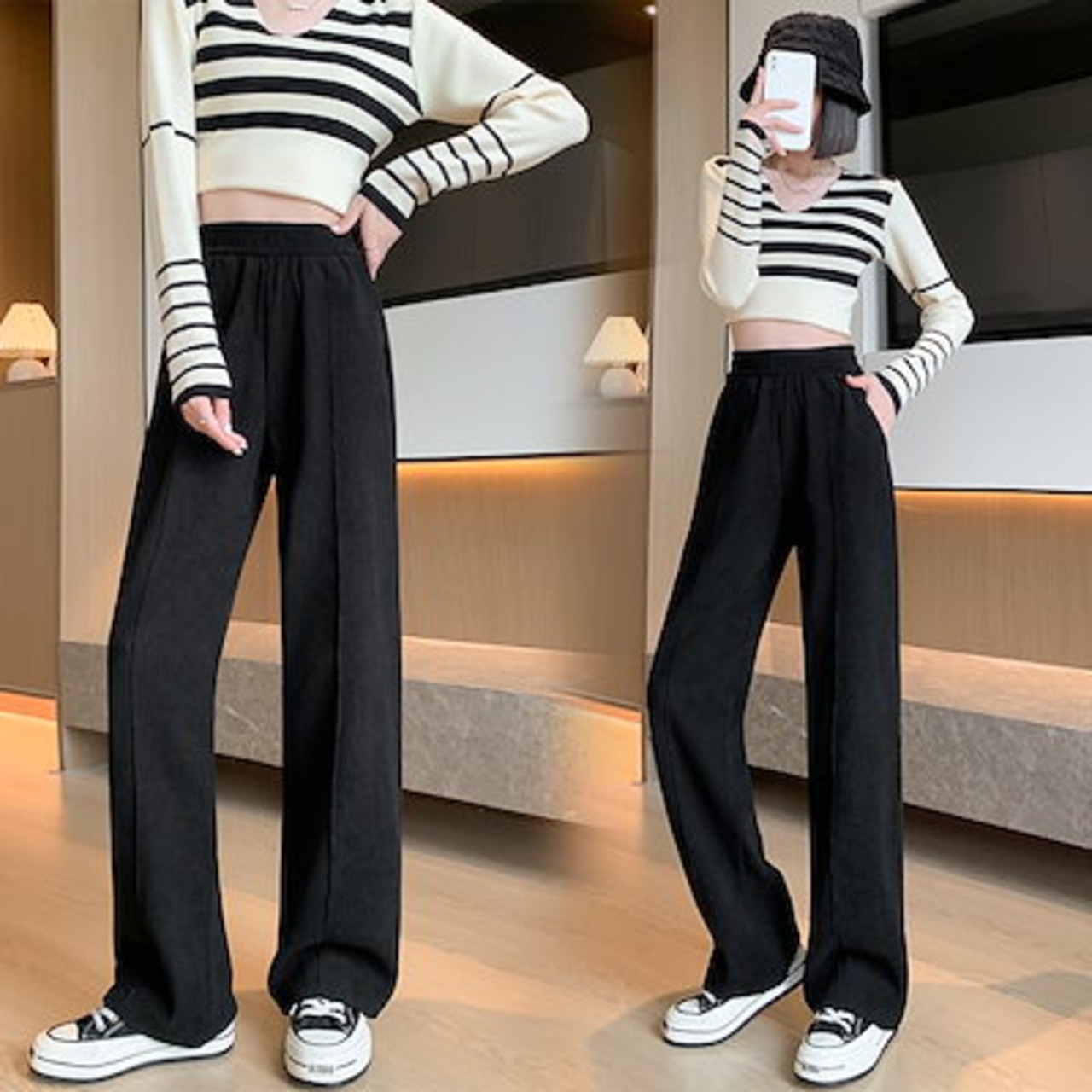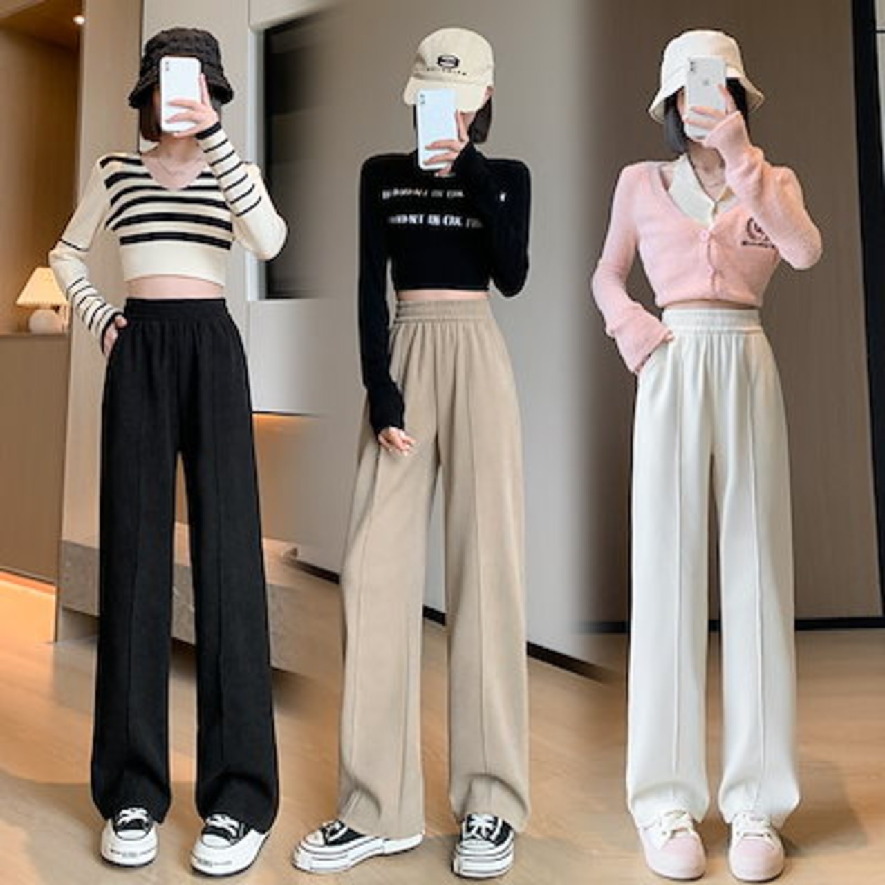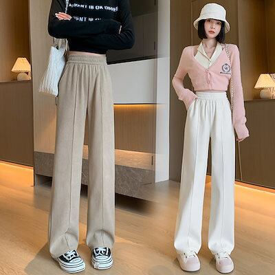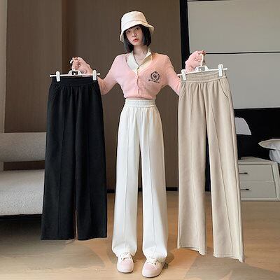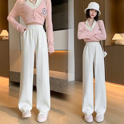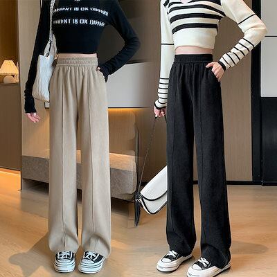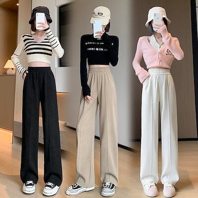 即納 2024韓国ファッションイージーワイドパンツ無地 ピンタック ストレート ロングパンツ もちもちで履き心地がいいです脚長効果!スキニーパンツ