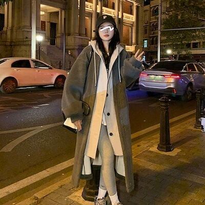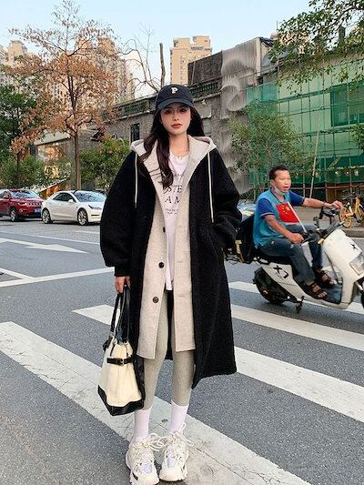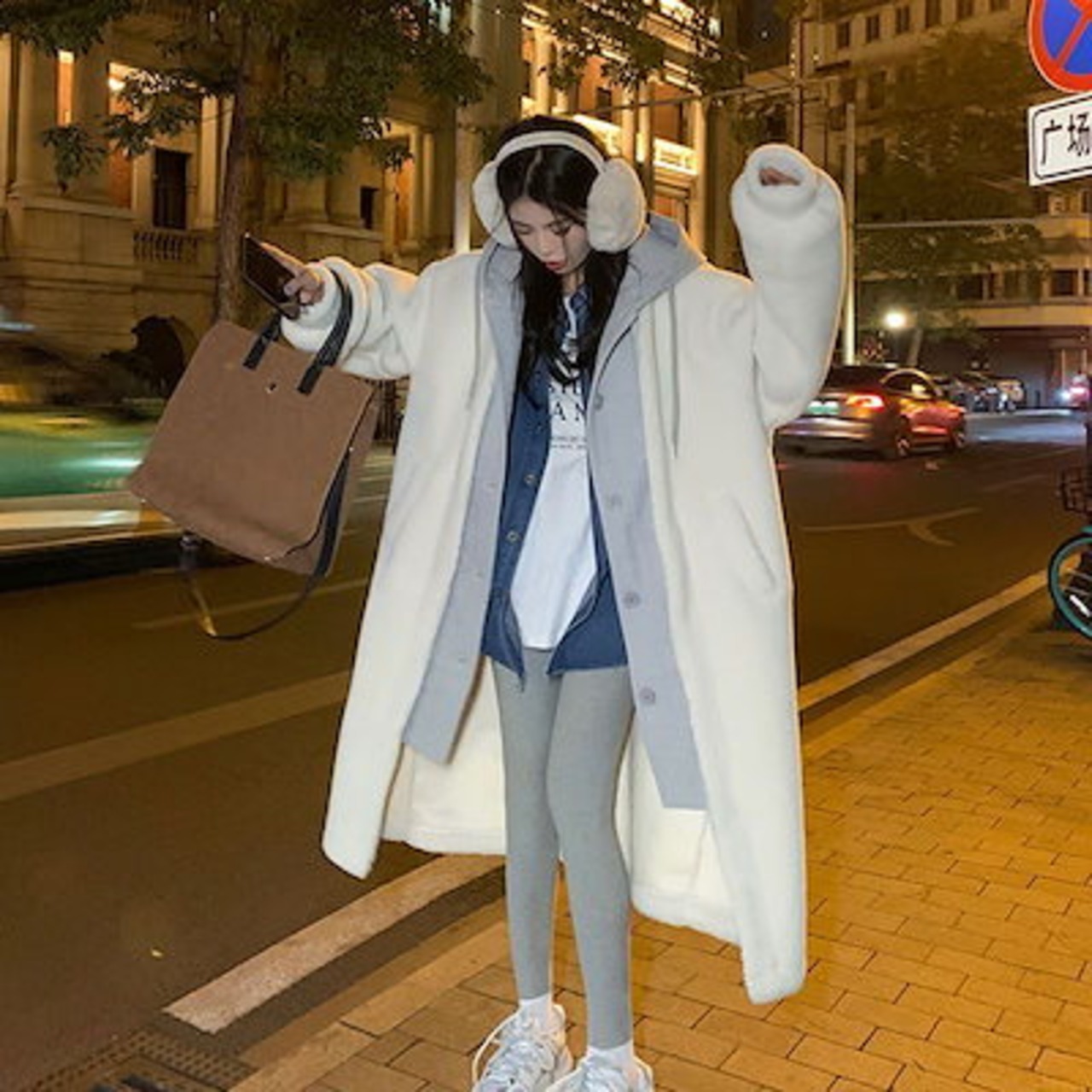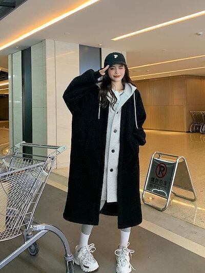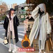 裏起毛ファッション ダウンジャケット 冬アウター フェイクレイヤード フード付き ジャケット フェイクラムズウール コート 裏起毛 防寒 ロング丈 毛皮コート トップス 韓国ファッション エコファー