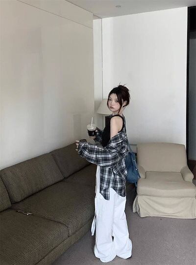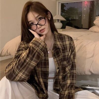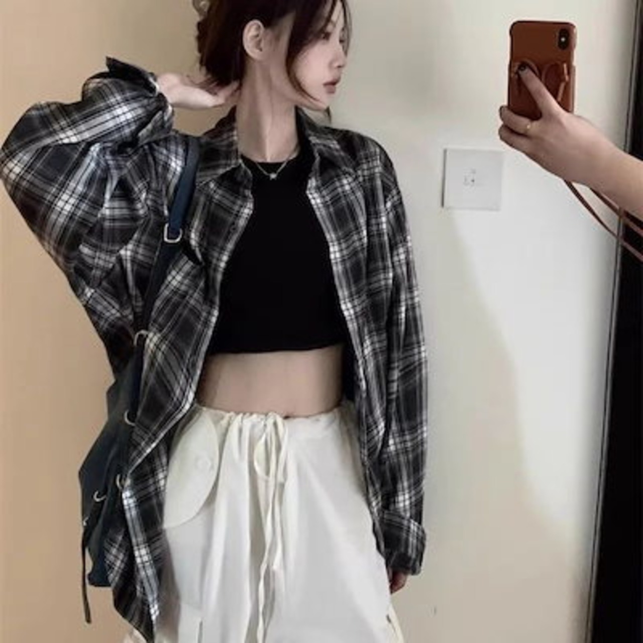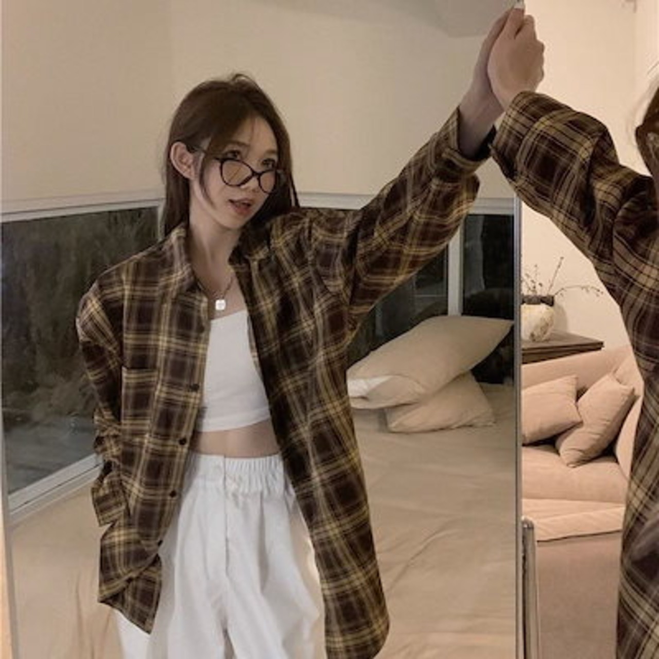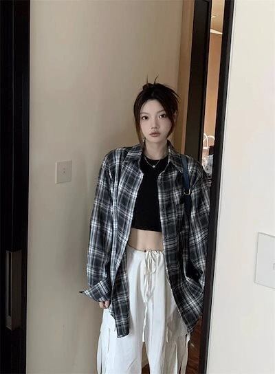 シャツ 長袖 2024 秋 新ブラウス チェック柄長袖シャツブラウスジャケットトップス