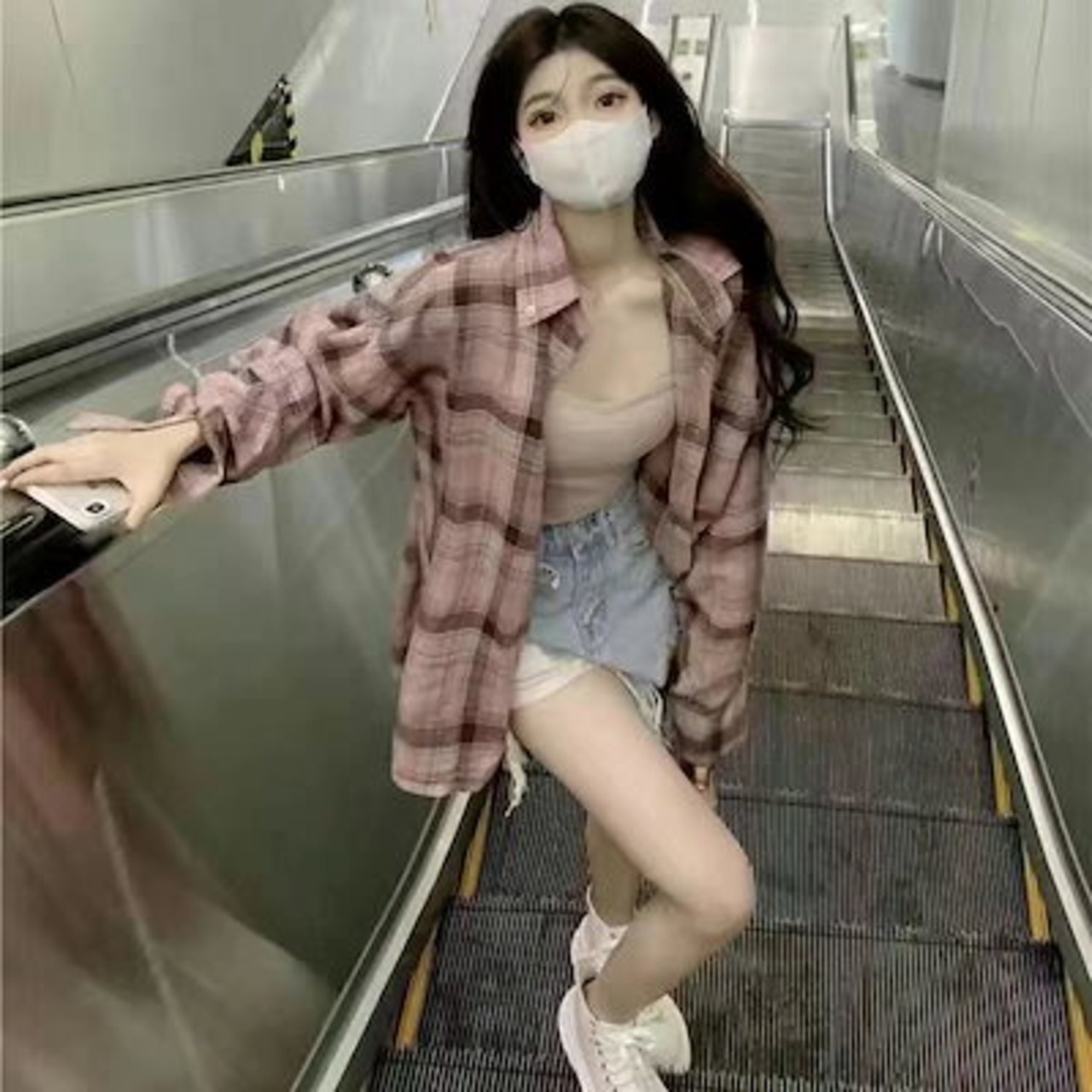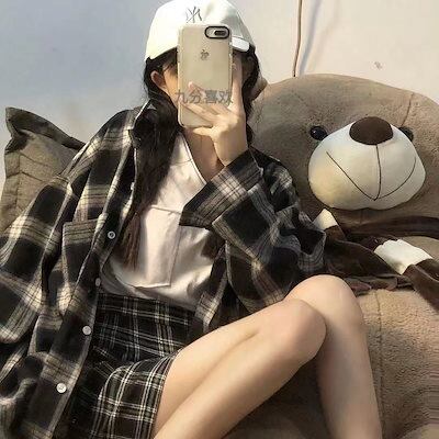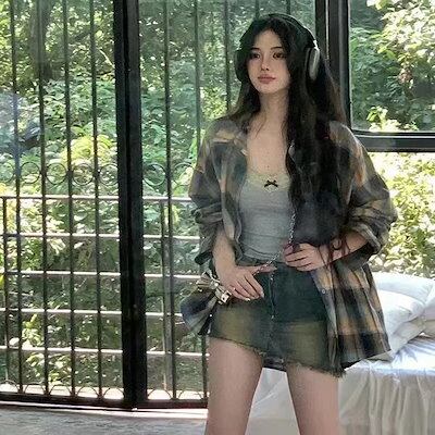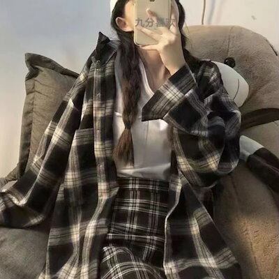 シャツ 長袖 2024 秋 新ブラウス ロングジャケットにチェック柄長袖シャツブラウスの秋の韓国バージョン