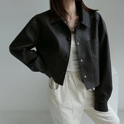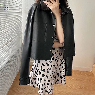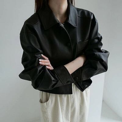 2024 秋 新作ライダースジャケット アウター ゆったりスウェットショート pu レザージャケット 韓国ファッション 流行り トップス ショット丈 革レディース 着痩せ ジャケット