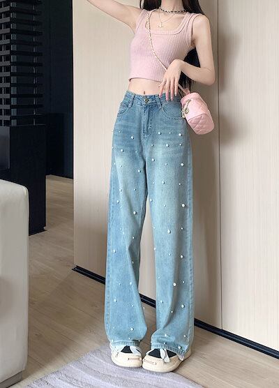 大人気 デニムパンツ 秋 新作 パンツ デニム ジーンズ スキニー レッグ ハイウエスト 細見え 春 水色 ライトブルー ストリート系 カジュアル ズボンファッション デザインお出かけ レディース 脚
