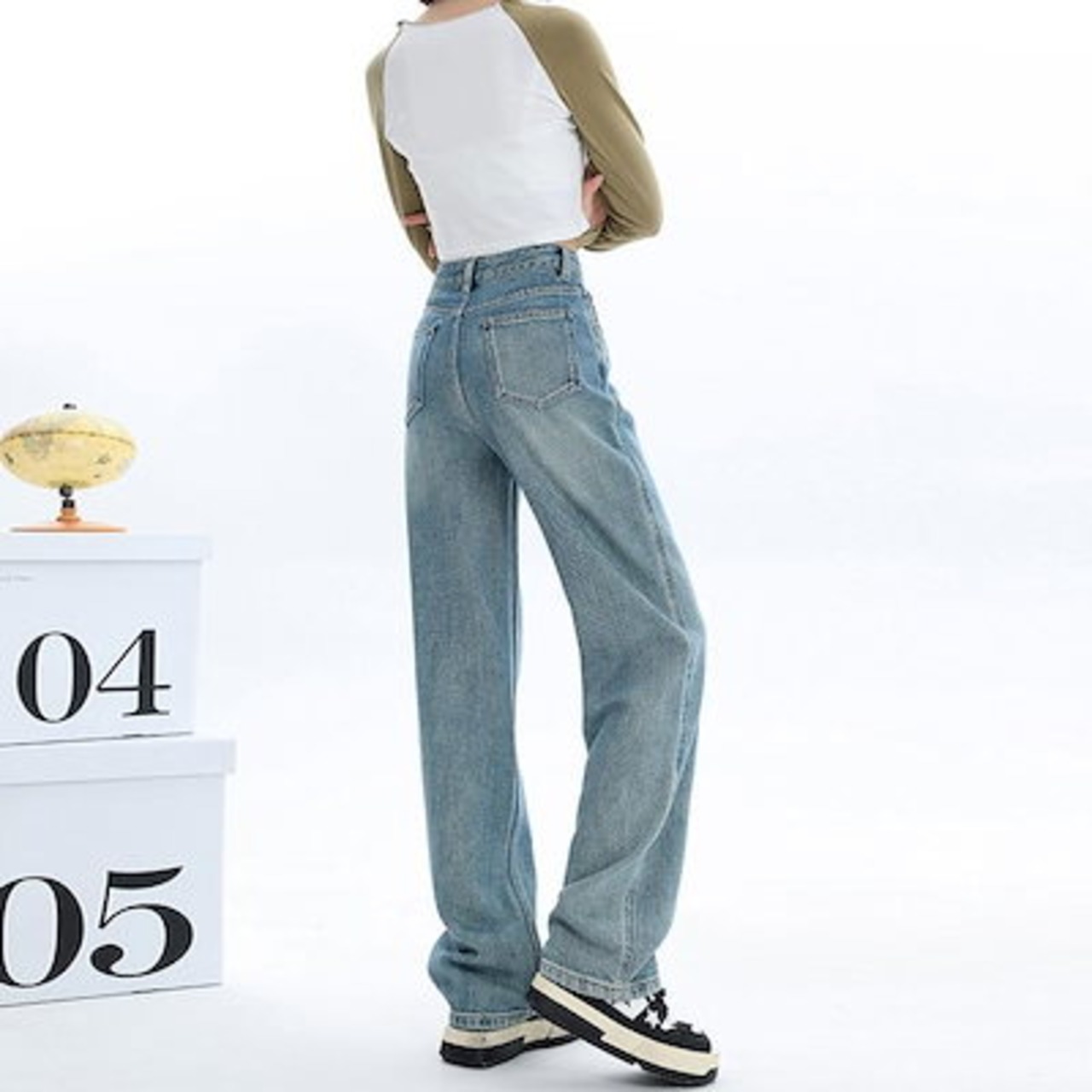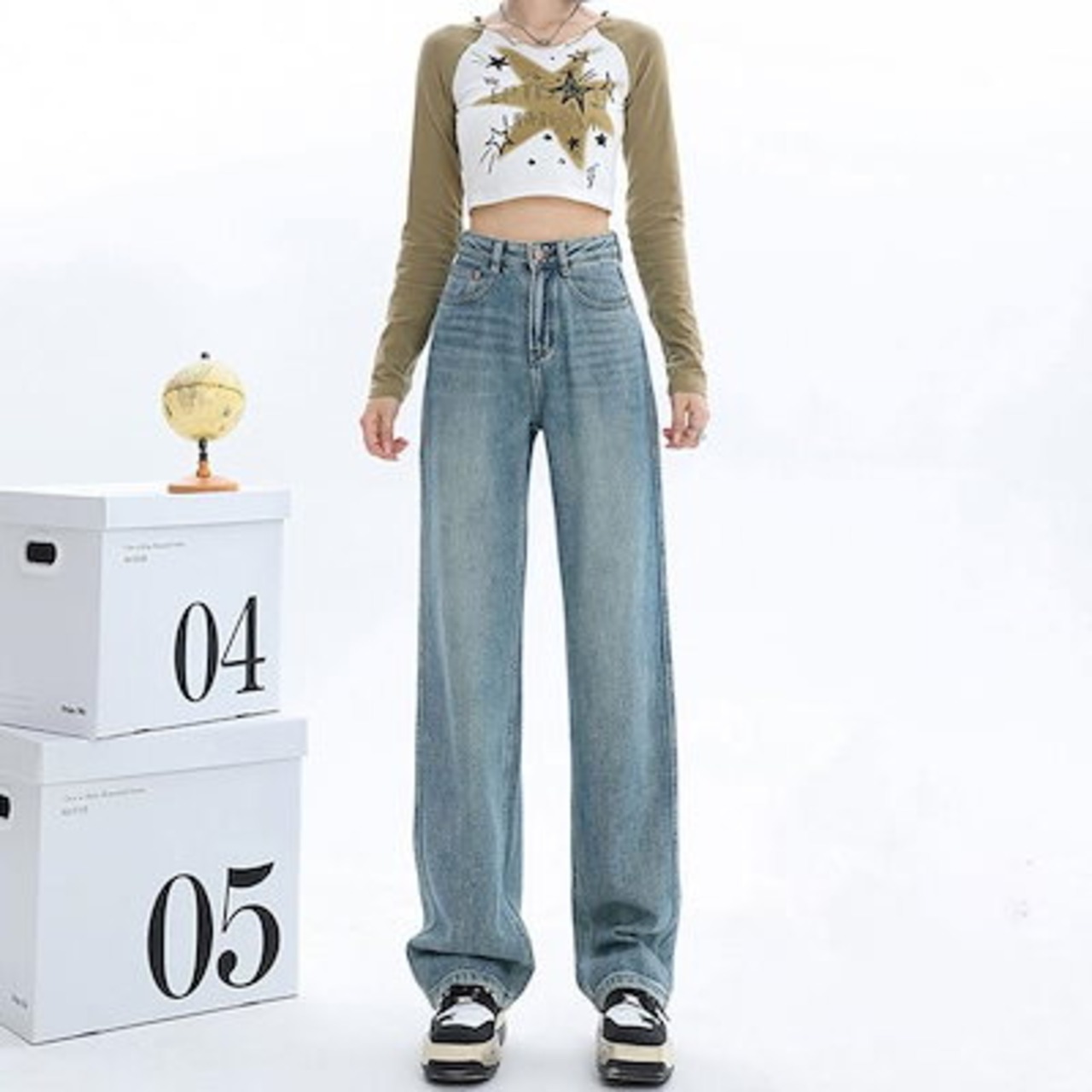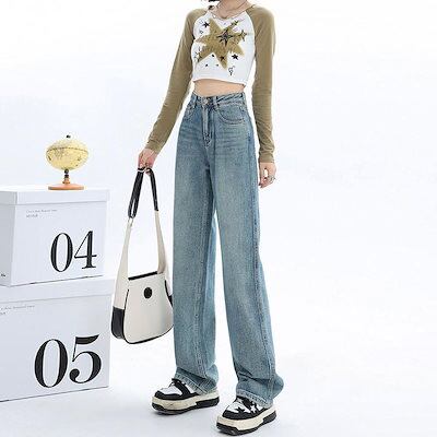 大人気 デニムパンツ 秋 新作 デニムボトムス ニューデザイン ストレートパンツ 春秋 ハイウェスト 体型カバー ファッション モップパンツ ワイドパンツ ジョガーパンツ 体型カバー レディース 脚長