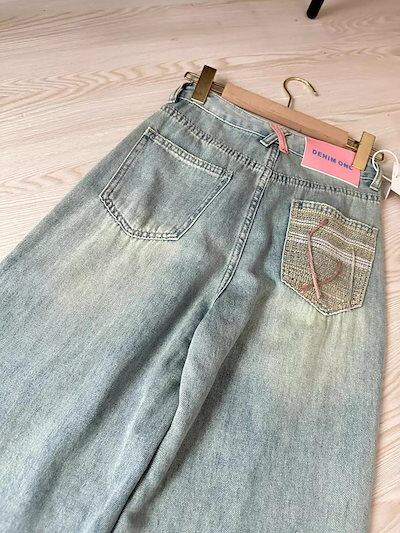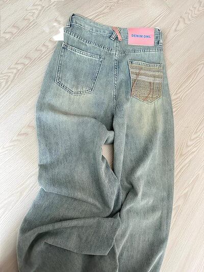 大人気 デニムパンツ 秋 新作 ライトブルー ゆったり ストレートパンツ デニムボトムス ニューデザイン ハイウェスト 着痩せ デザイン感 ファッション コーディネート ワイドパンツ ジョガーパンツ