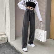 大人気 デニムパンツ 秋 新作 ハイウェスト パンツ 調節可能 春秋 薄手 ダークグレー ジーンズ 着痩せ ハイウェスト ストレート ゆったり ワイドパンツ レディース 脚長効果 美脚効果