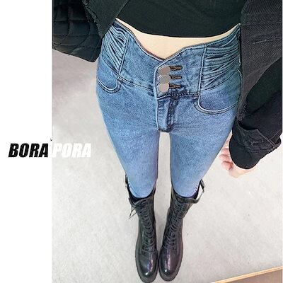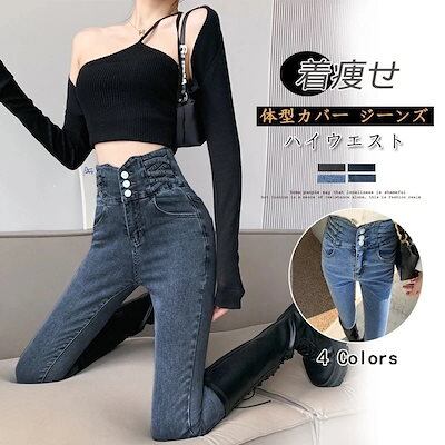 大人気 デニムパンツ 秋 新作 ハイウエスト ジーンズ ブルー ブラック 着痩せ 体型カバー ジーンズ ハイウエスト 体型カバー レディース 脚長効果 美脚効果
