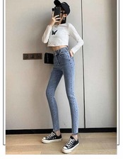 大人気 デニムパンツ 秋 新作 ストレッチ ジーンズ 春 夏 オールマッチ 着痩せ 韓系 体型カバーストレート ドローストリングパンツ ジーンズ レディース 脚長効果 美脚効果