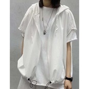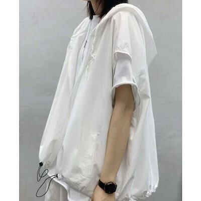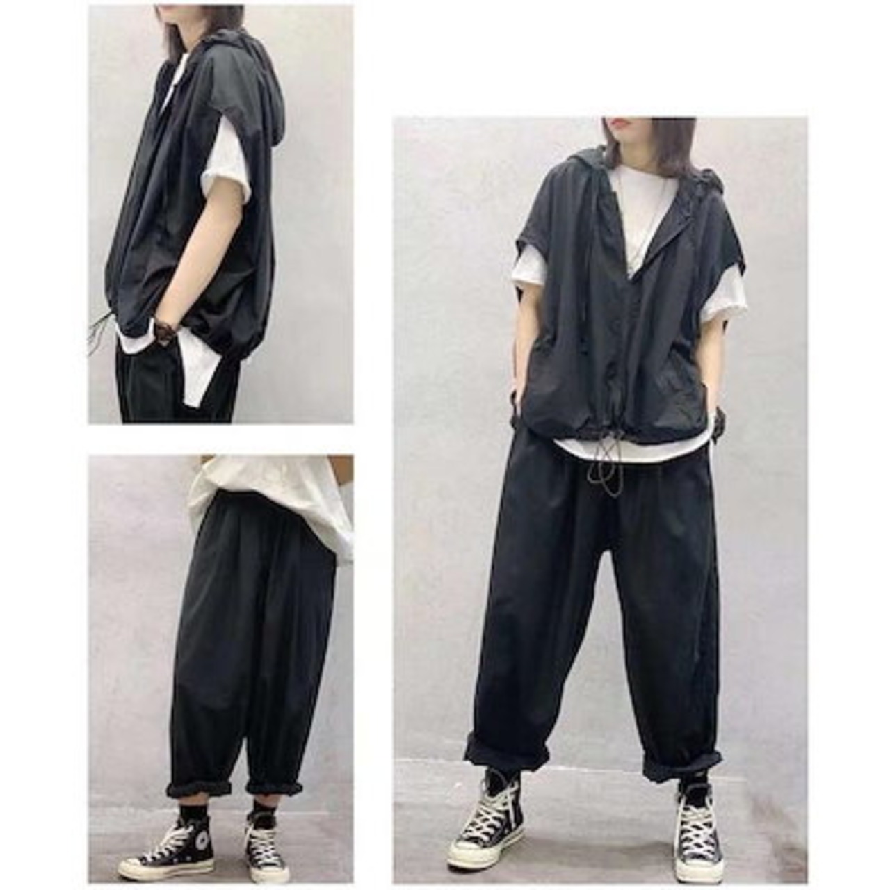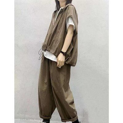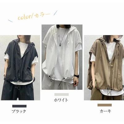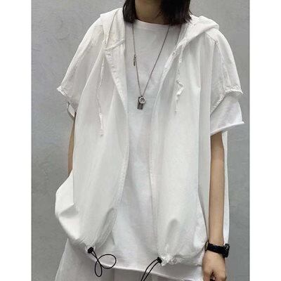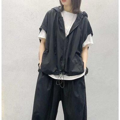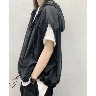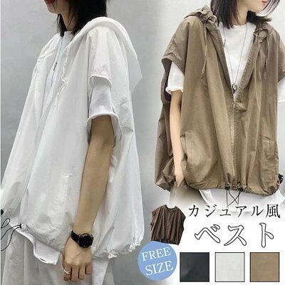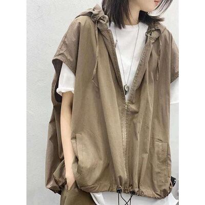 ベスト レディース パーカー 春 夏 半袖 カジュアル ジレベスト ジレ アウター 前開き コーデ おしゃれ 無地 レトロ 女性 ゆったり アウター