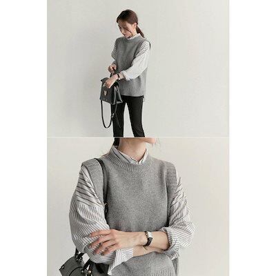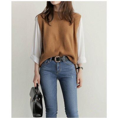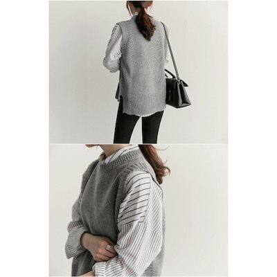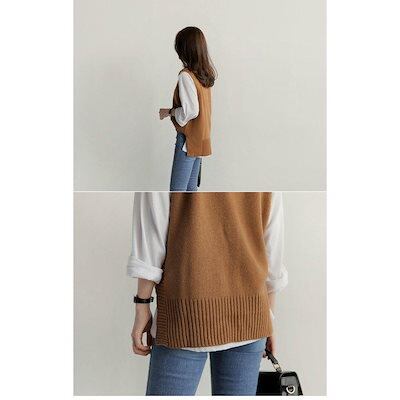 ニットベスト レディース 40代 秋服 ベストセーター 無地 ショット丈 上品 ノースリープニットベスト セーター韓国風 体型カバー 通勤 着痩せ 2色