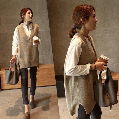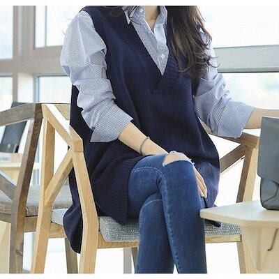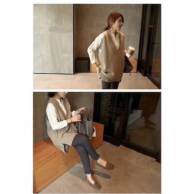 ニットベスト レディース 40代 秋冬 vネック ベスト セーター 無地 ミディアム丈 上品 ノースリープ ニットベスト ニットセーター 体型カバー 通勤 着痩せ