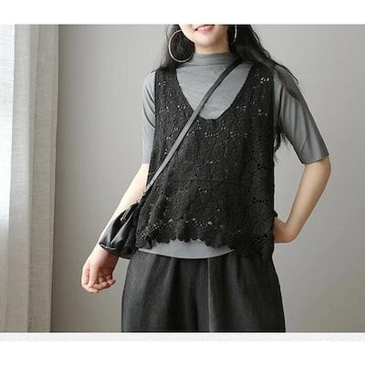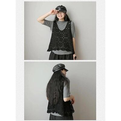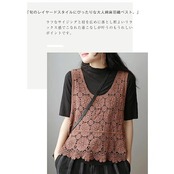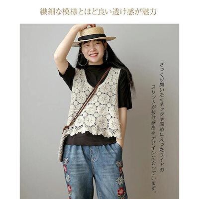 ベスト レディース 春 夏 プルオーバー 透かし編み サイドスリット コーデ Vネック かぎ編み 可愛い 刺繍 レイヤード ニットベスト きれいめ