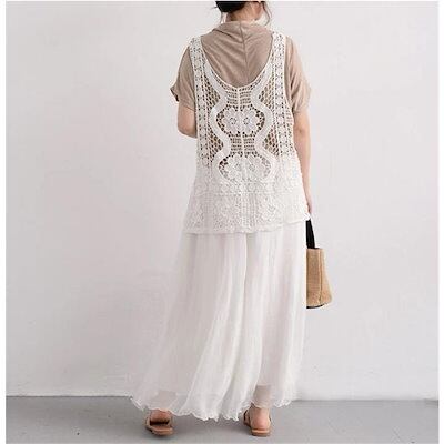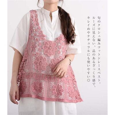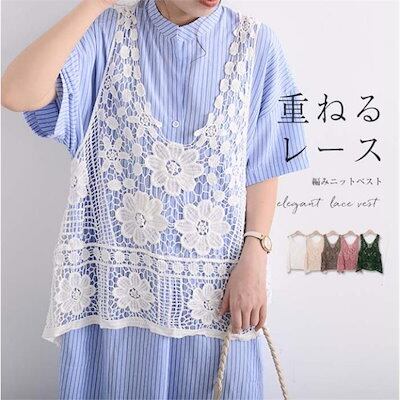 レースベスト ベスト レディース 春 夏 40代 花柄レース タンクトップ トップス vネック 透かし編み 薄手 重ね着 ベストノースリーブ タンク 春コーデ