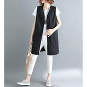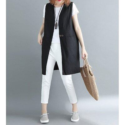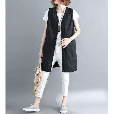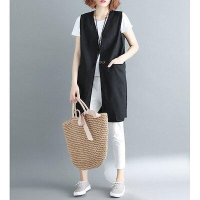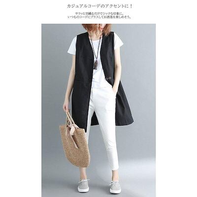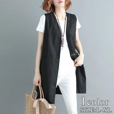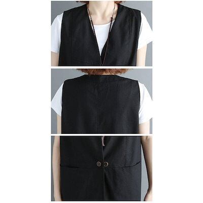 ベスト レディース 夏 ミディアム丈 ベスト ジレ 重ね着 シンプル ブラックトップス レディース