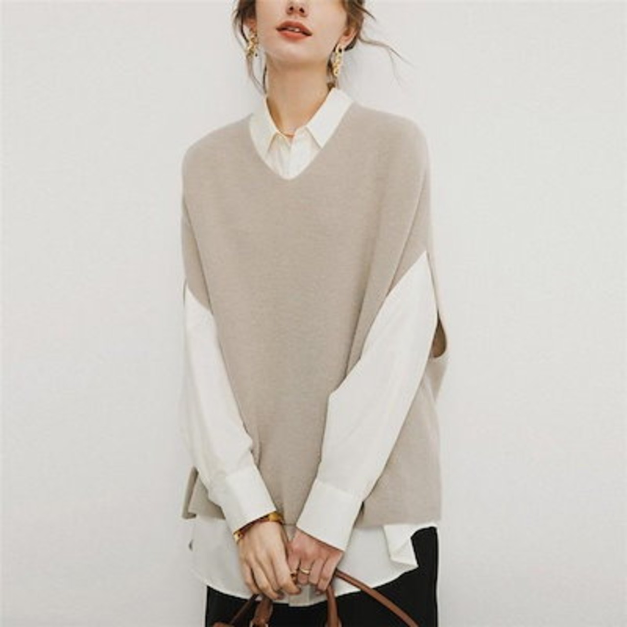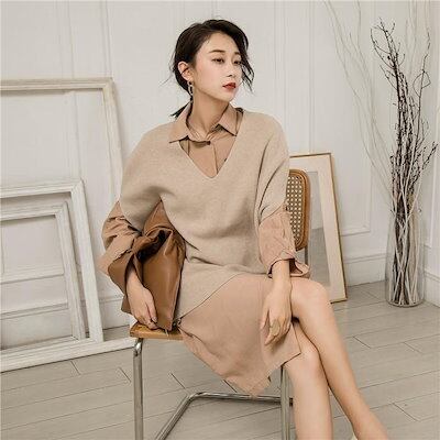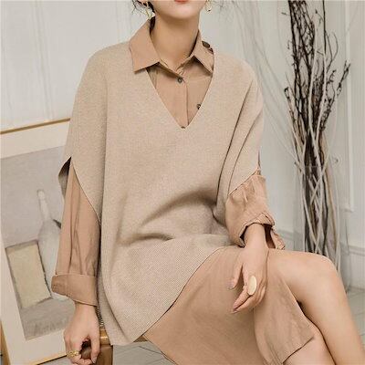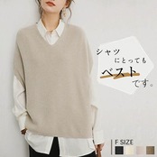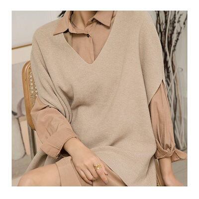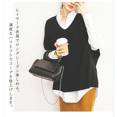 即納 ニットベスト レディース 大きいサイズ ニット 40代 トップス ベスト Vネック ノースリーブ ロング丈 シンプル 無地 カジュアル レイヤード 重ね着 上品