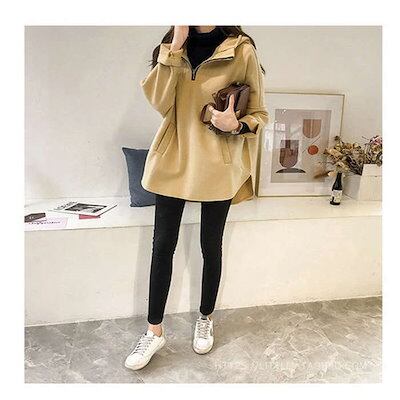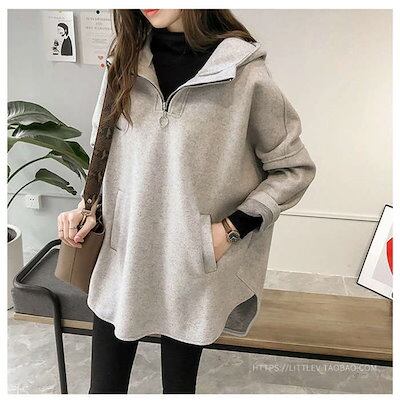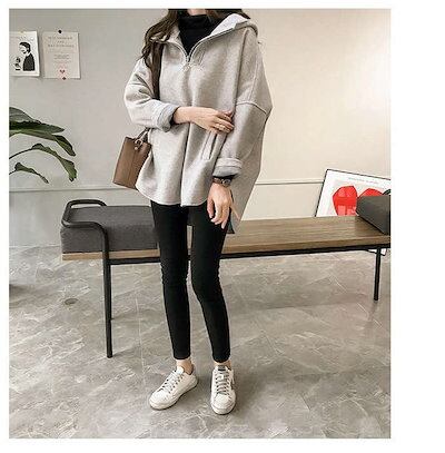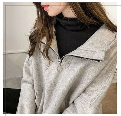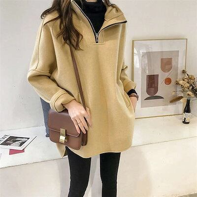 パーカー レディース 秋 タートルネックパーカー トレーナー トップス プルオーバー スウェット フード付き 長袖 大きいサイズ ゆったり 韓国風 カジュアル シンプル ファスナー付き 大人 30代
