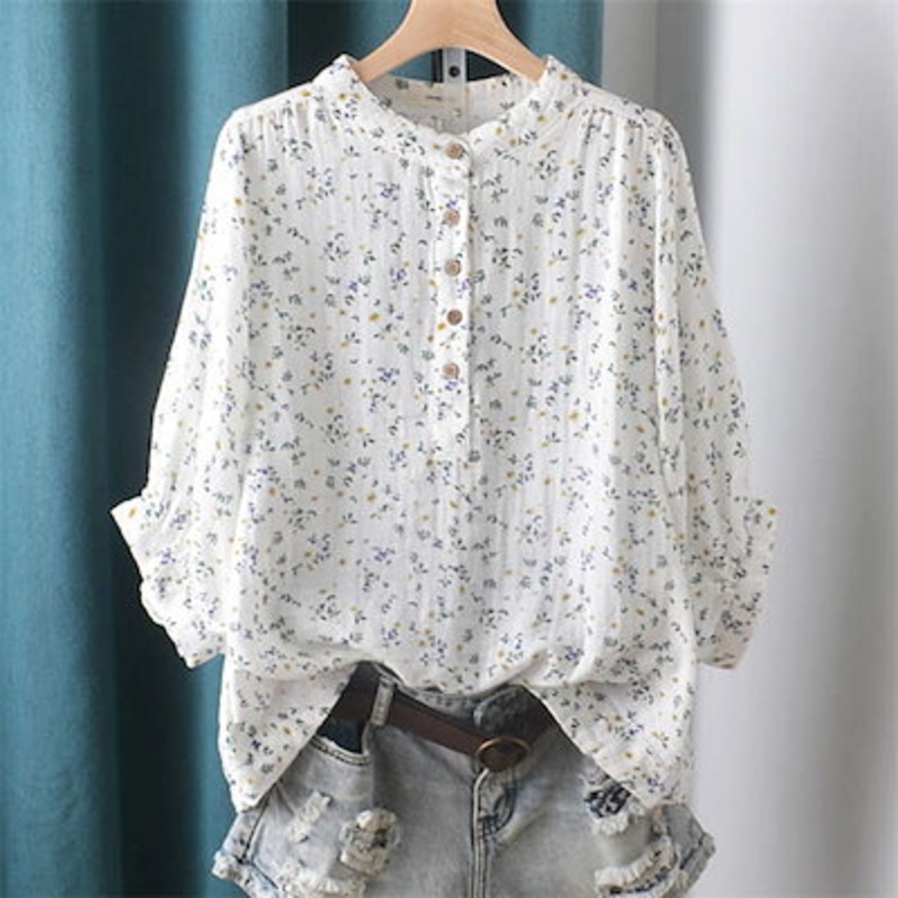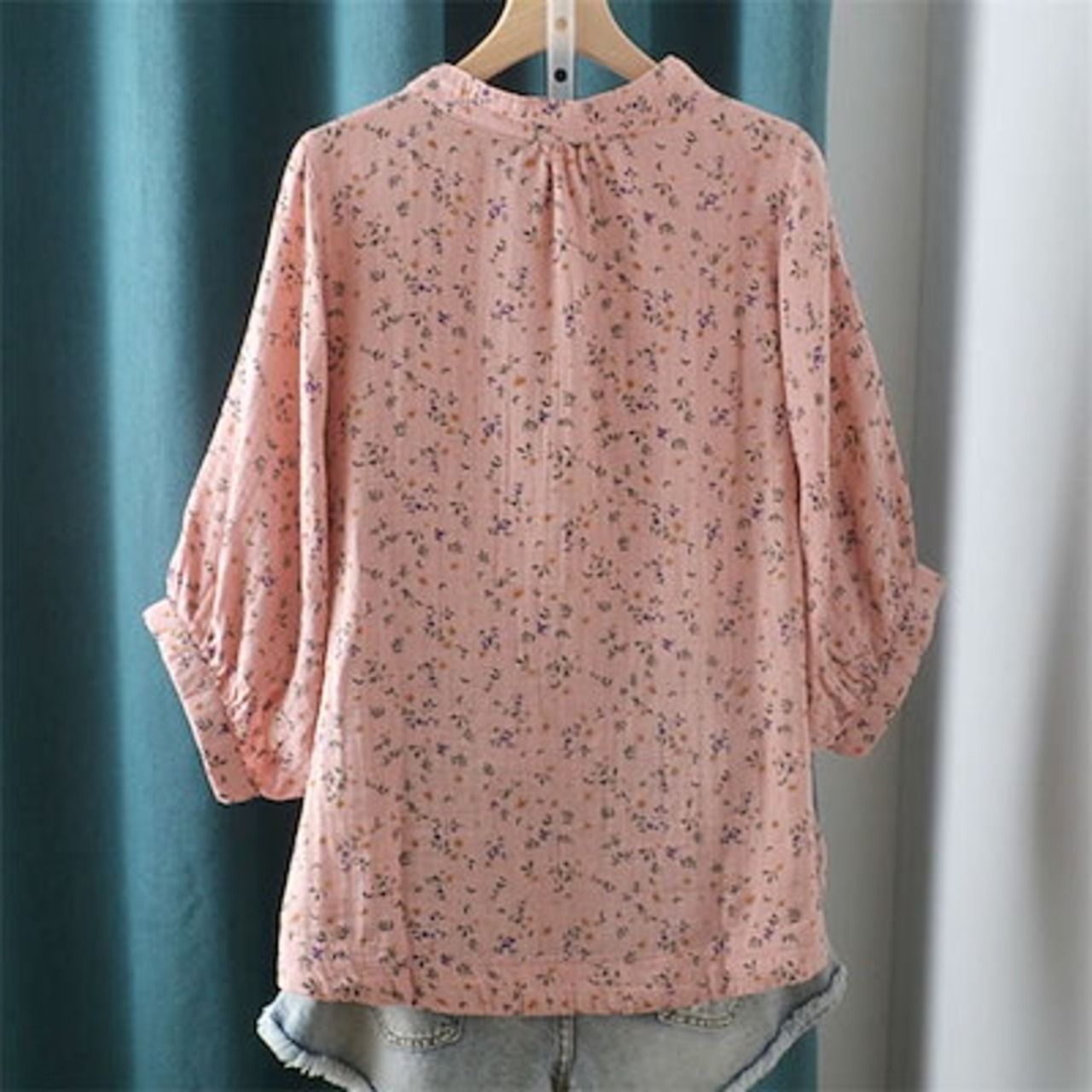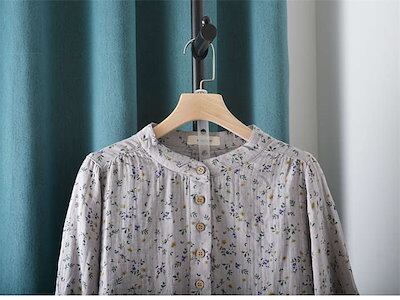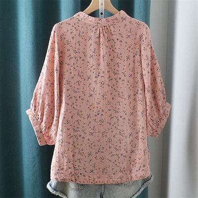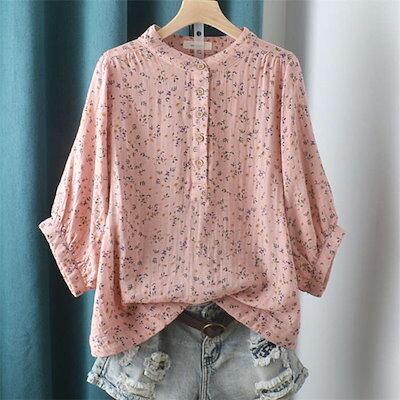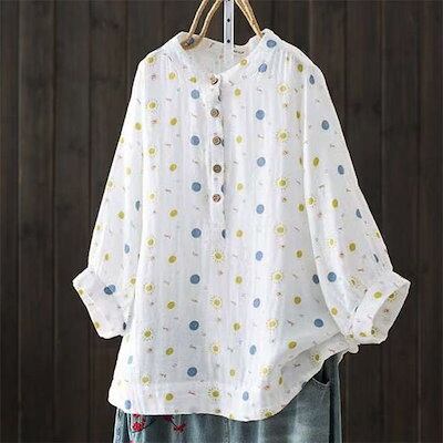ダブルガーゼ シャツ シャツブラウス レディース 花柄 ドット柄 2重ガーゼ シャツ ブラウス 七分袖 トップス 羽織り ガーゼ カジュアル 立ち襟 ダブルガーゼ 大きいサイズ 体型カバー 柔軟 通勤