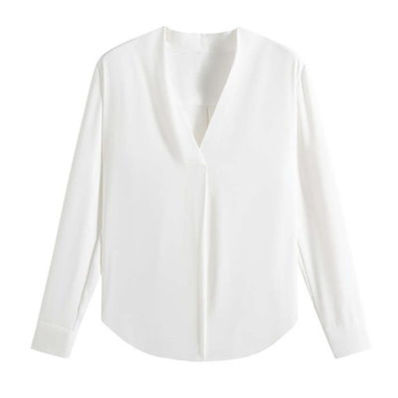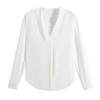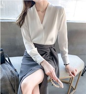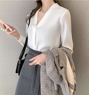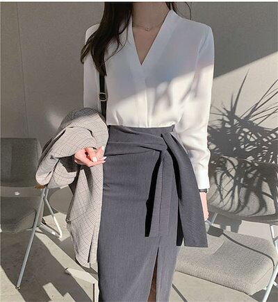 シャツ ブラウス レディース Vネック ブラウス シャツ 長袖 フォーマル トップス 胸元タック 通勤 オフィス 上品 トレンド シフォン 春夏 すっきり 無地 可愛い カジュアル フォーマル シンプ