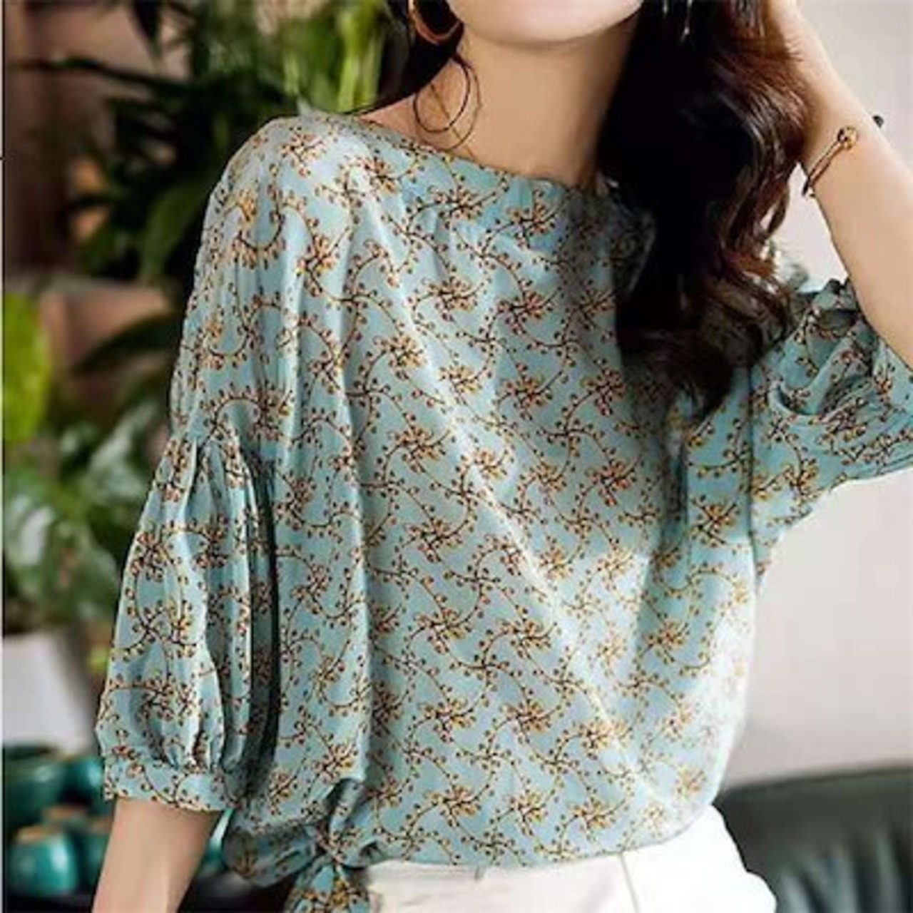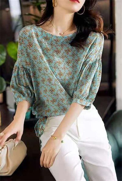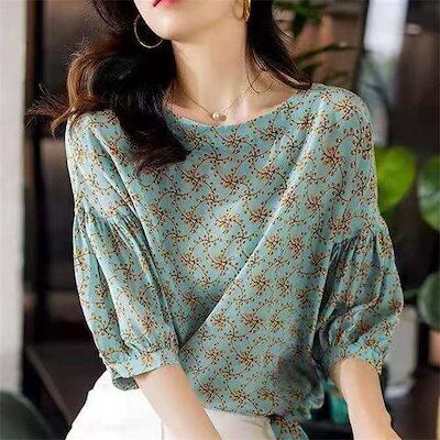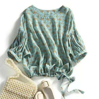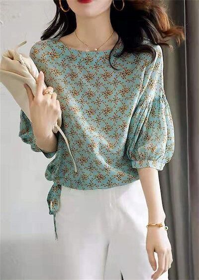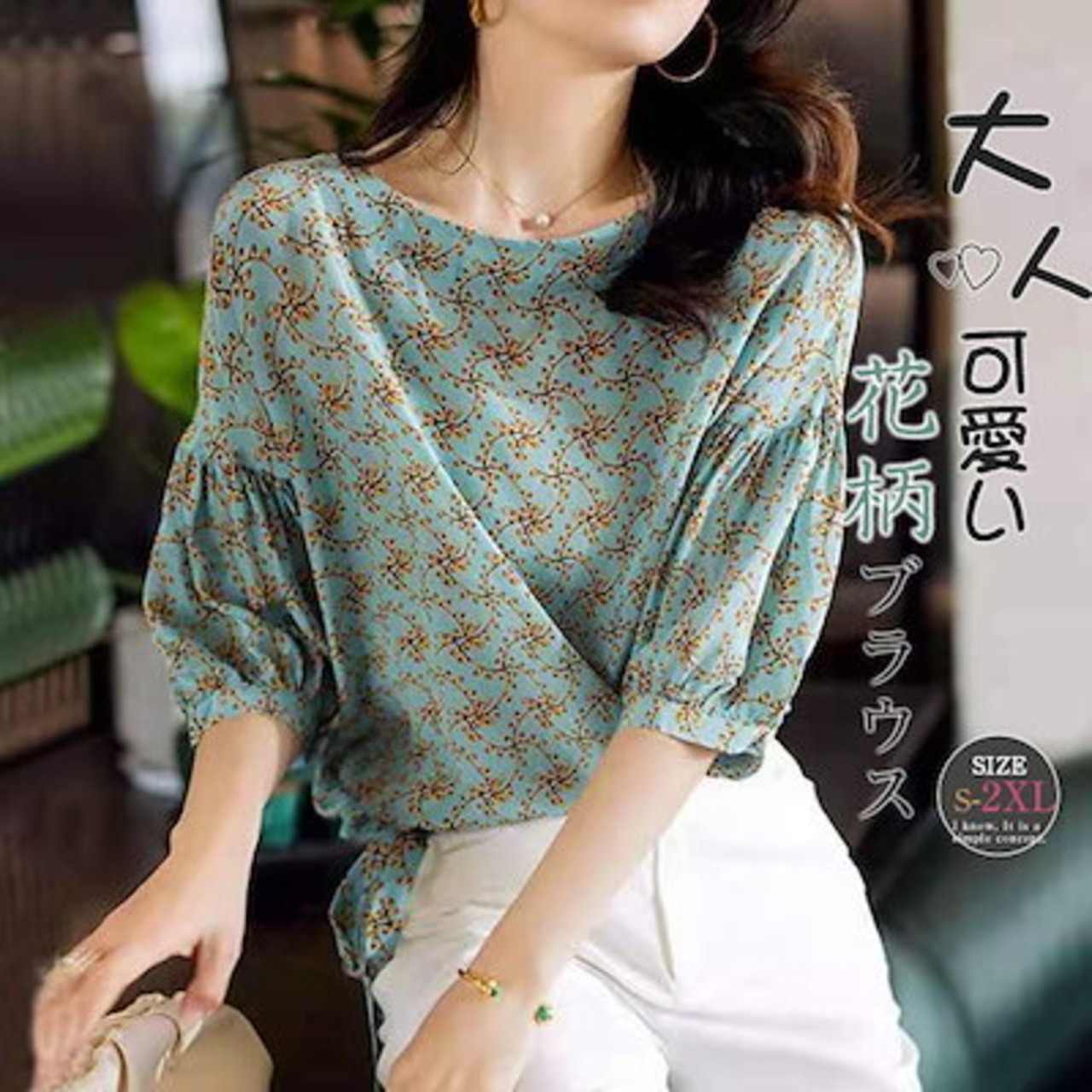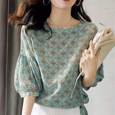ブラウス レディース 春 夏 シャツ トップス 花柄 ぽわん袖 シャツ おしゃれ かわいい 春 夏 サマー シャツ シンプル エレガント 大きいサイズ ゆったり 体型カバー 総柄 五分袖 七分袖 可愛