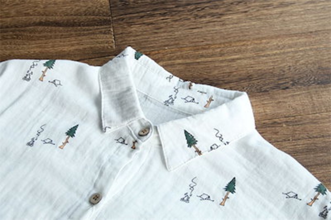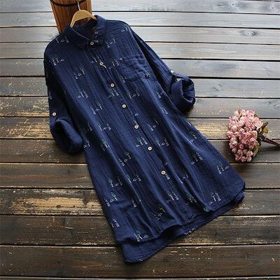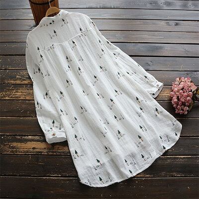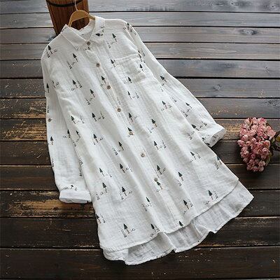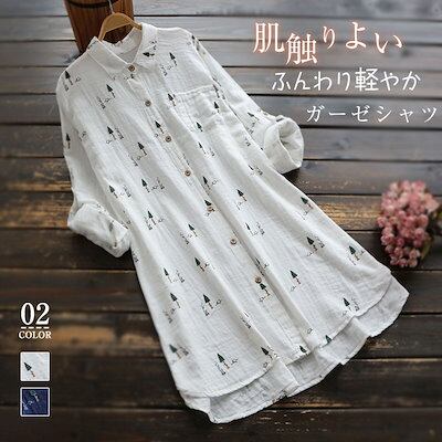 ロングシャツ ガーゼ シャツ ガーゼシャツ レディース 総柄 2重ガーゼ チュニック 長袖 折襟 日焼け防止 襟 UVカット トップス 長袖 秋 春 夏 カジュアル風 柔らかい 大きいサイズ 大人可愛