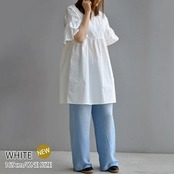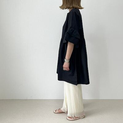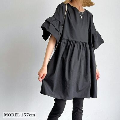 ブラウス Tシャツ レディース チュニック 半袖 春 夏 秋 フレア袖 大きいサイズ ゆったり ロンT ブラウス オシャレ ワンピース ショート丈 カジュアル ウエストギャザー 着回し 体型カバー ゆ