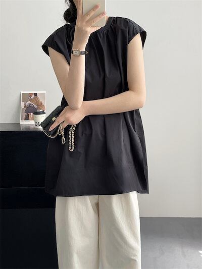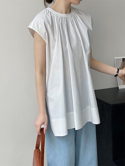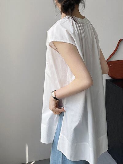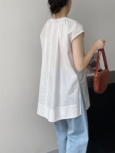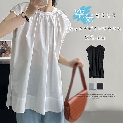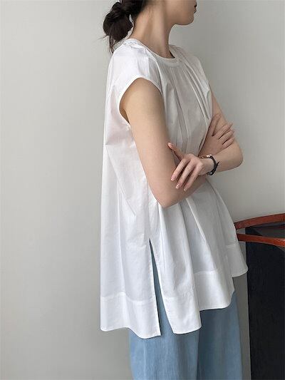 タック ブラウス レディース 春 夏 シャツブラウス ノースリーブ トップス プルオーバー 薄手 カジュアル シャツ チュニック コットン タンクトップ サイドスリット 大きいサイズ 体型カバー ゆっ