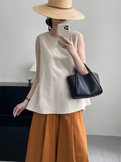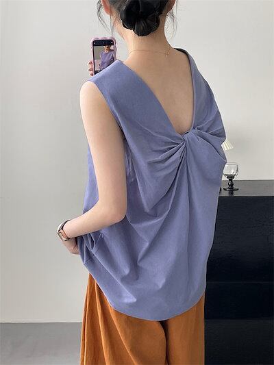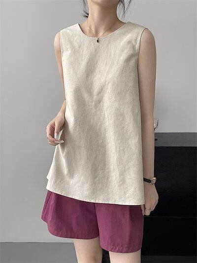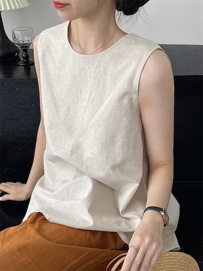 綿麻 タンクトップ レディース ノースリーブ 夏 トップス ブラウス バックデザイン 春 夏 プルオーバー 薄手 コットン リネン タンクトップ 大きいサイズ 通勤 無地 シンプル 大人可愛い 着回し