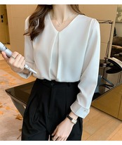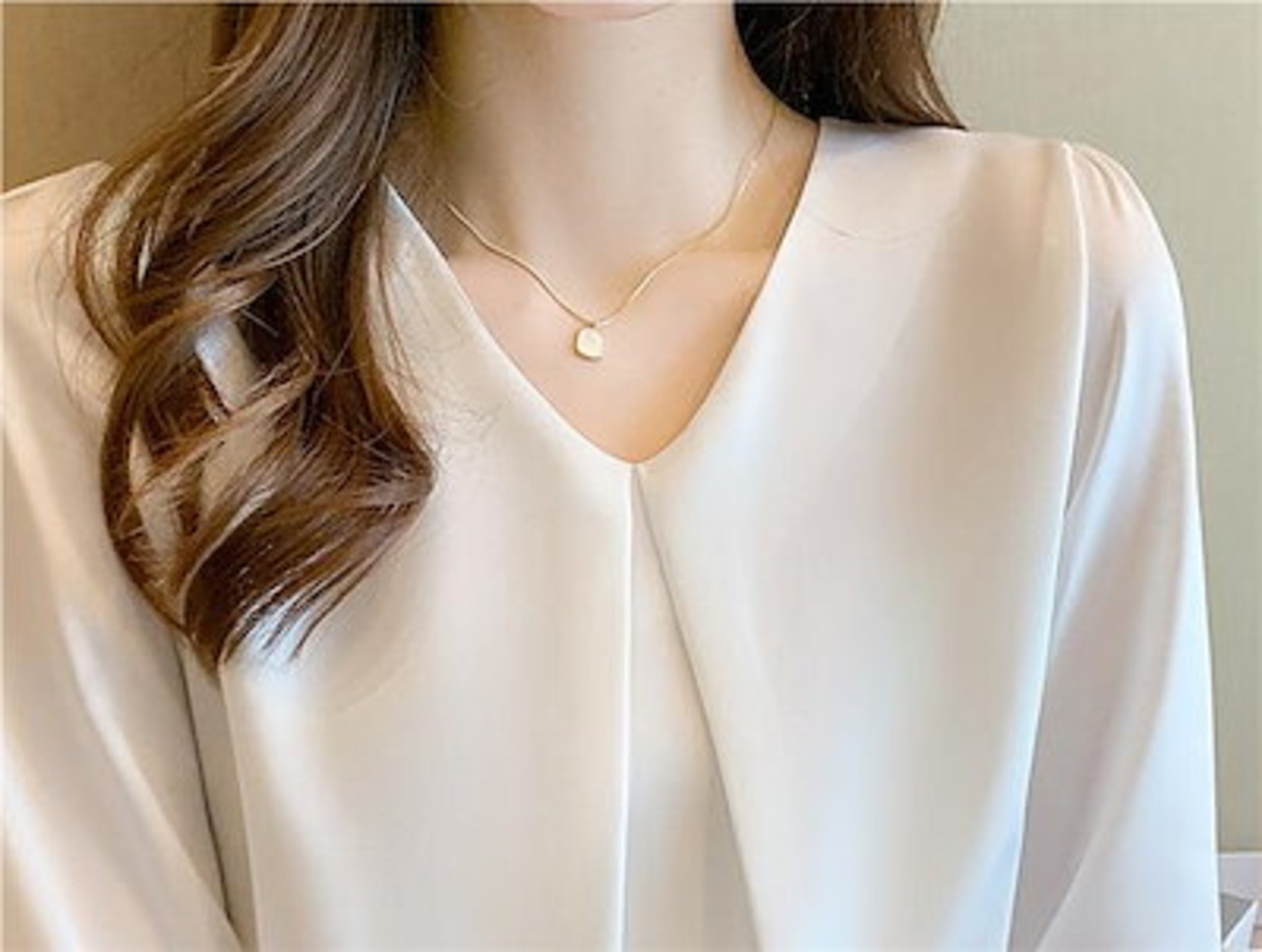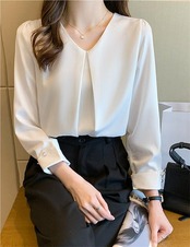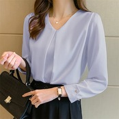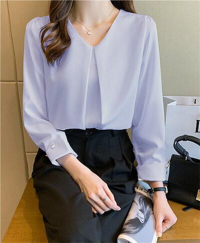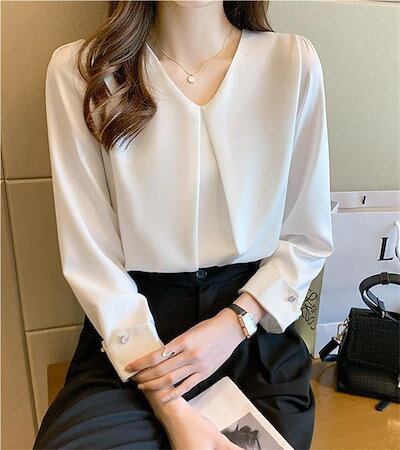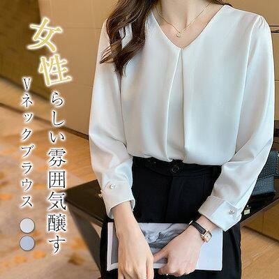 シャツ トップス ブラウス タック レディース V ネック おしゃれ 長袖 ゆったり 無地 ファッション フォーマル 秋 春 夏 OL ビジネス 通勤 上品 30代 40代 50代