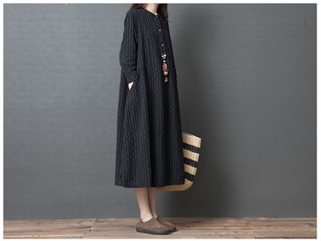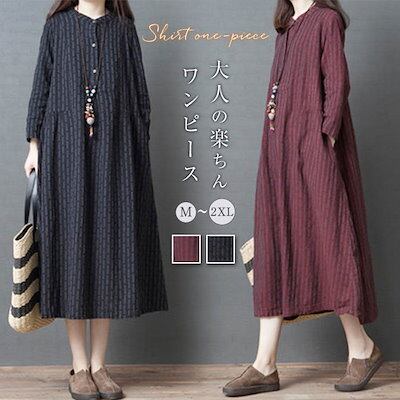 シャツワンピース 長袖 レディース 秋冬 ロングワンピース 大きいサイズ ロング ワンピ シャツワンピ カジュアル ミモレ丈 体型カバー ゆったり 大人可愛い きれいめ フレアワンピース Aライン ミ
