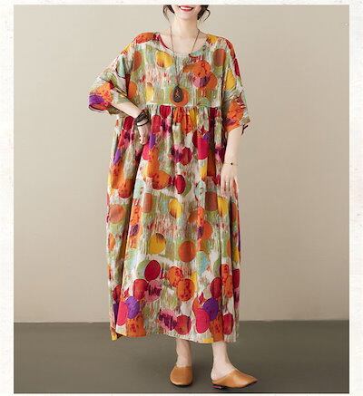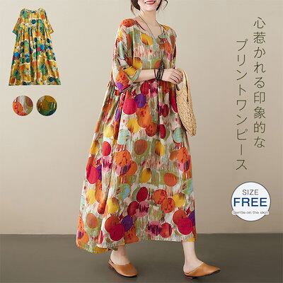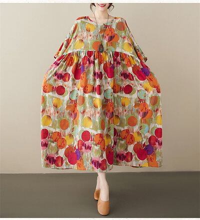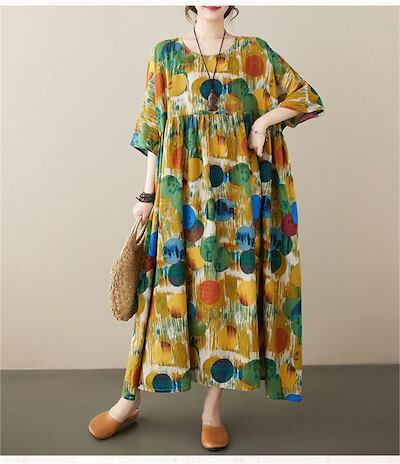 マキシワンピース 大きいサイズ 夏 レディース ドット 水玉柄 半袖 ゆったり ロングワンピ 総柄 ロング丈 キレイめ フレア 大人可愛い ゆったり 体型カバー ナチュラル 着痩せ リゾートワンピース