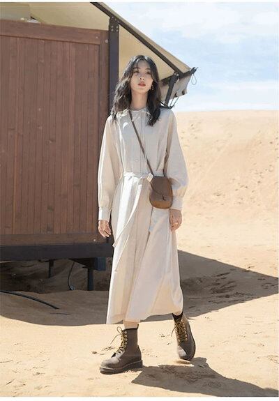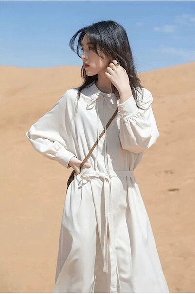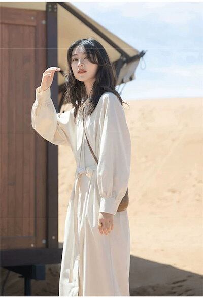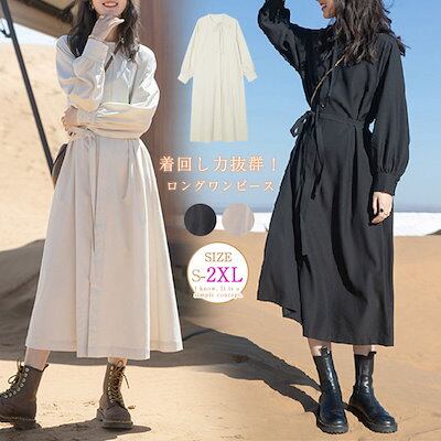 シャツワンピース 長袖 無地 ロングワンピース レディース 春 ホワイト ワンピース キレイめ Aライン フレア ミモレ丈 ワンピ ゆったり シンプル ゆる 体型カバー カジュアル ベーシック 着痩せ
