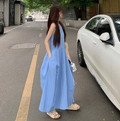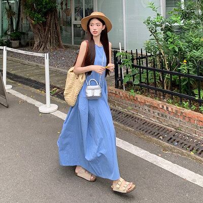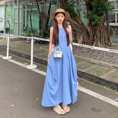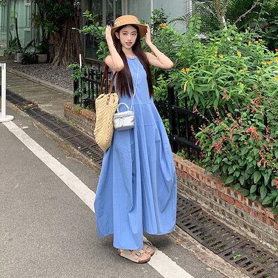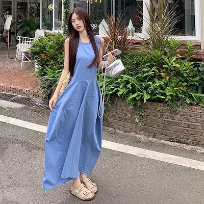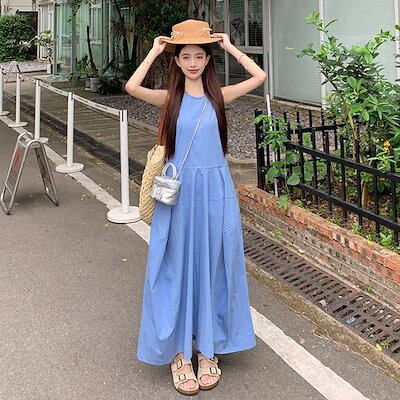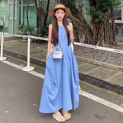 ワンピース ノースリーブ 夏 レディース ロングワンピース 無地 フレアワンピース Aライン ロングワンピ ミモレ丈 ワンピ 袖なし シンプル ゆったり カジュアル ベーシック エレガント お