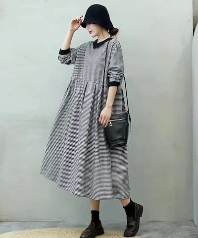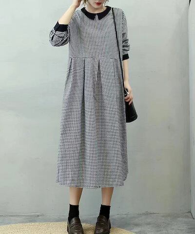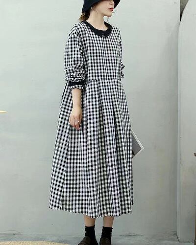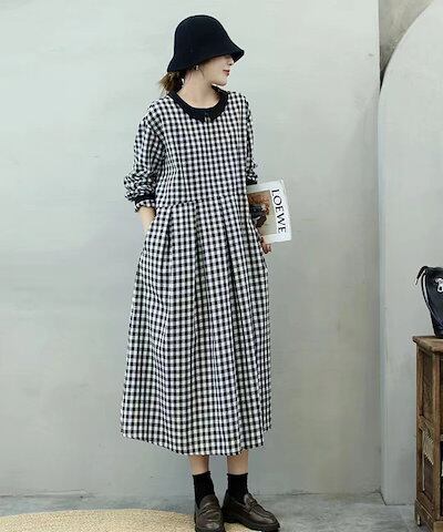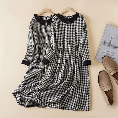 シャツワンピース 大きいサイズ レディース ワンピース チェック 細魅せ Aライン シャツワンピ オリジナル ワンピース ワンピ シャツワンピ ゆったり カジュアル 体型カバー チェック 長袖 ミモ