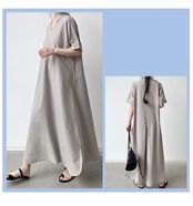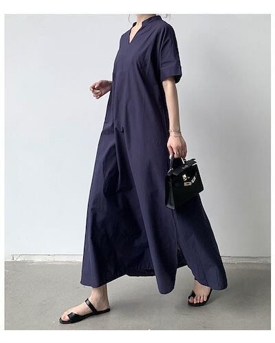シャツワンピース 半袖 ロングワンピース レディース 夏 Aライン マキシ丈ワンピース シャツワンピース 大きいサイズ フレアワンピース 前開き ロング丈 マキシワンピース キレイめ カジ