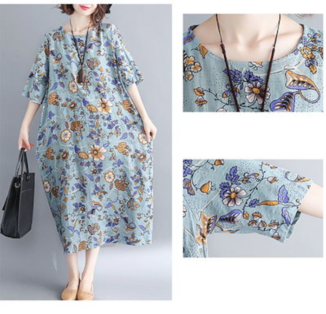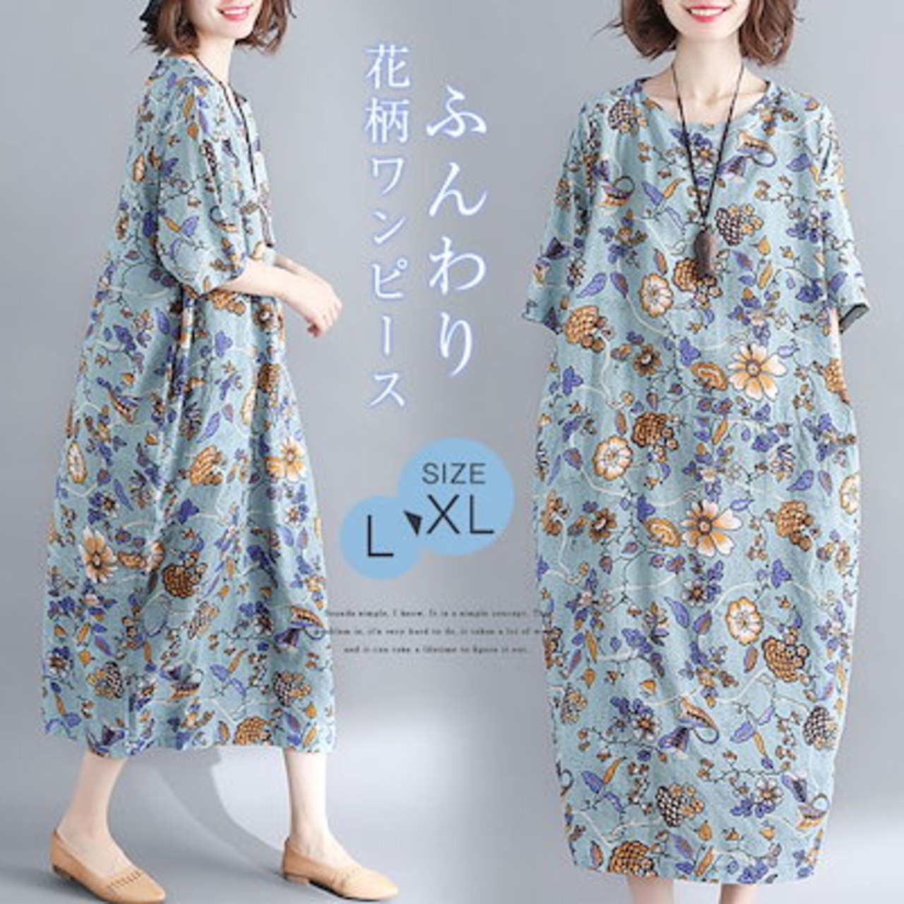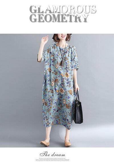 ワンピース 半袖 春 夏 ロングワンピース 大きいサイズ 花柄 総柄 ミモレワンピース 小花柄 ミモレ丈 ワンピース ロングワンピ ゆったり ふんわり リゾートワンピース きれいめ 柔らか 体型カバ