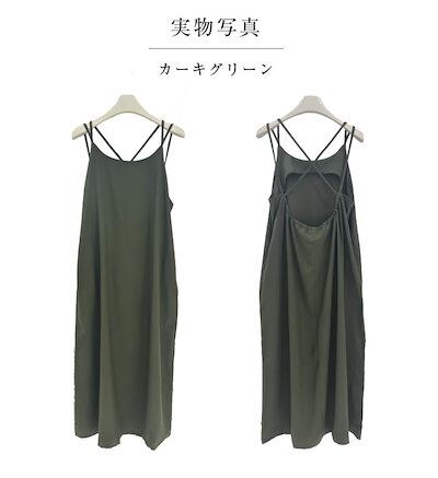 ワンピース キャミワンピース 夏 レディース ジャンパースカート ロングワンピ マキシ丈 きれいめ バッククロス ロング サロペット 大きいサイズ ゆったり キャミ 無地 大人カジュアル 大人可愛い