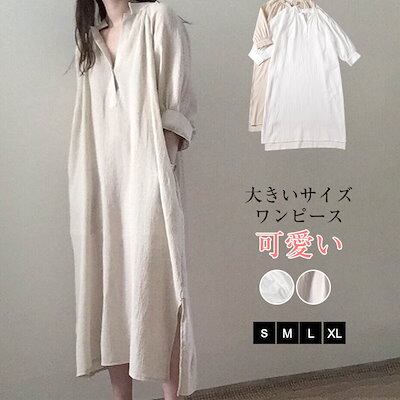 大きいサイズ レディース マキシワンピース ゆったり ワンピース ロング丈 ワンピース Vネック 長袖 無地 ゆったり 体型カバー マキシ丈 ロングワンピース 長袖 カジュアル きれいめ ウエストリ