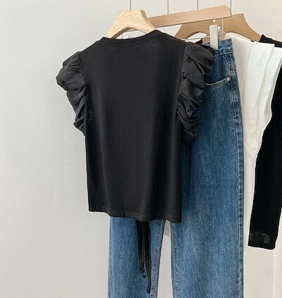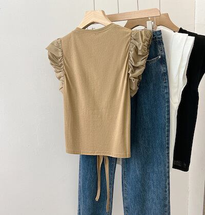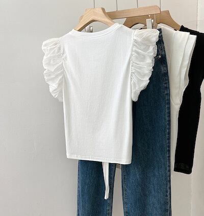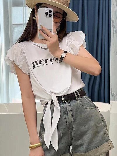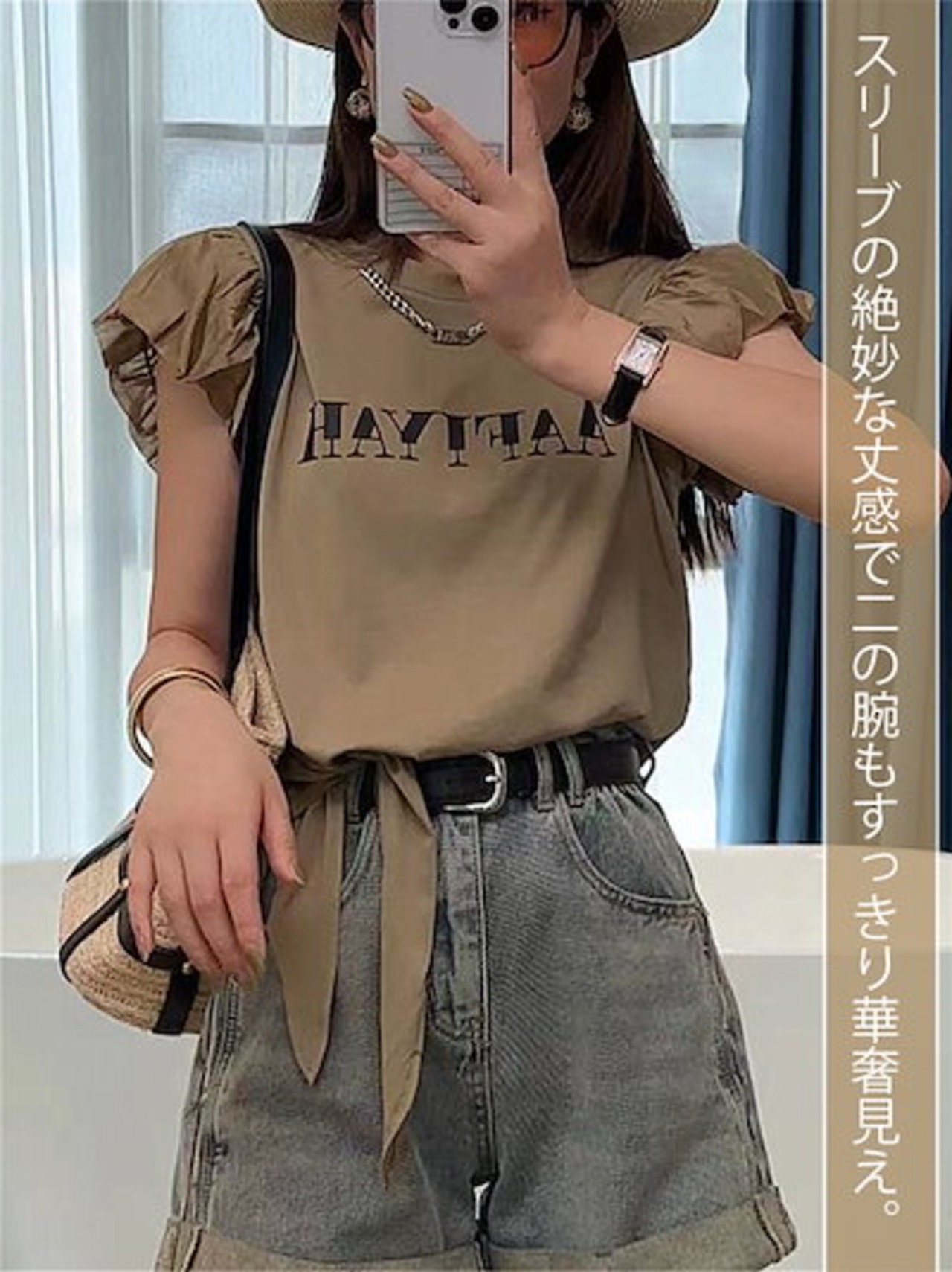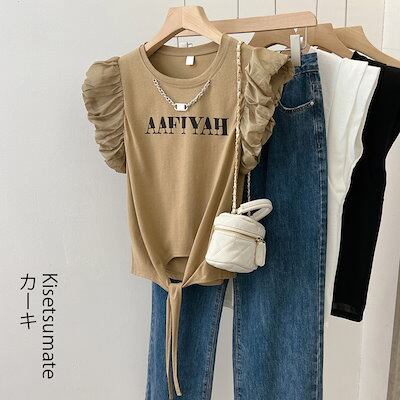 シャツ ブラウス レディース フリル袖 Tシャツ ゆったり プルオーバー トップス お洒落 可愛い カジュアル ファッション 通勤 日常 夏 秋