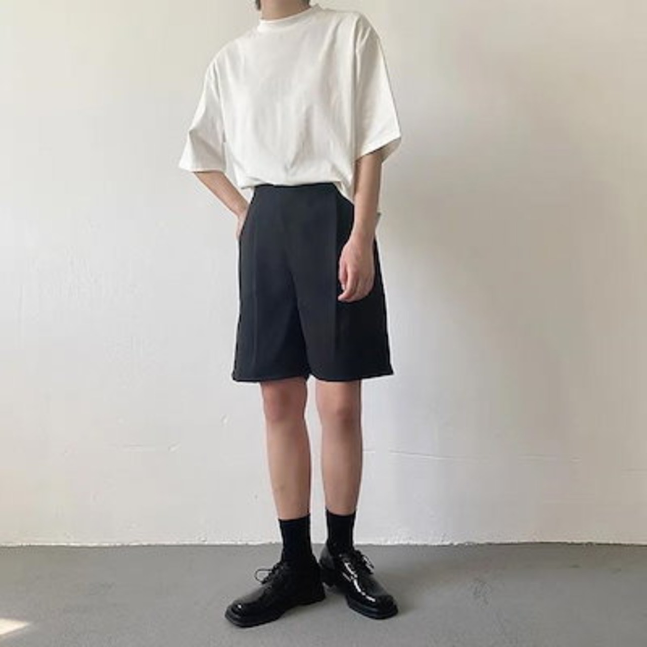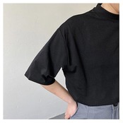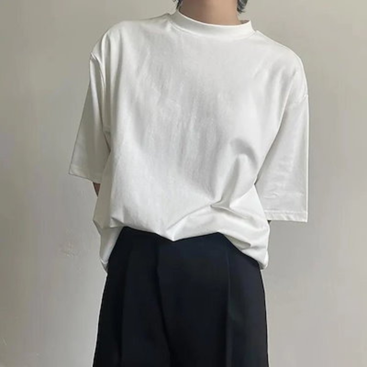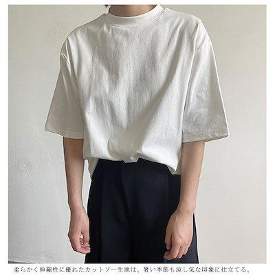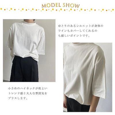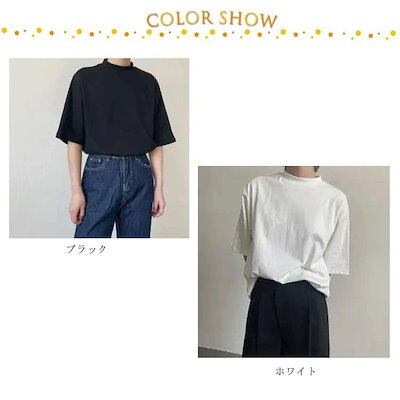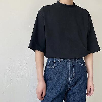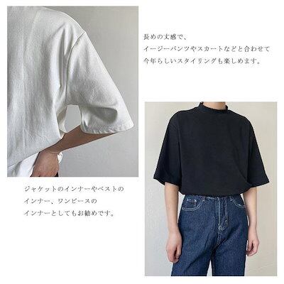 カットソートップス Tシャツ ティシャツ モックネック ブラック ハイネック ティーシャツ 体型カバー 夏 半袖ドロップショルダー レディ