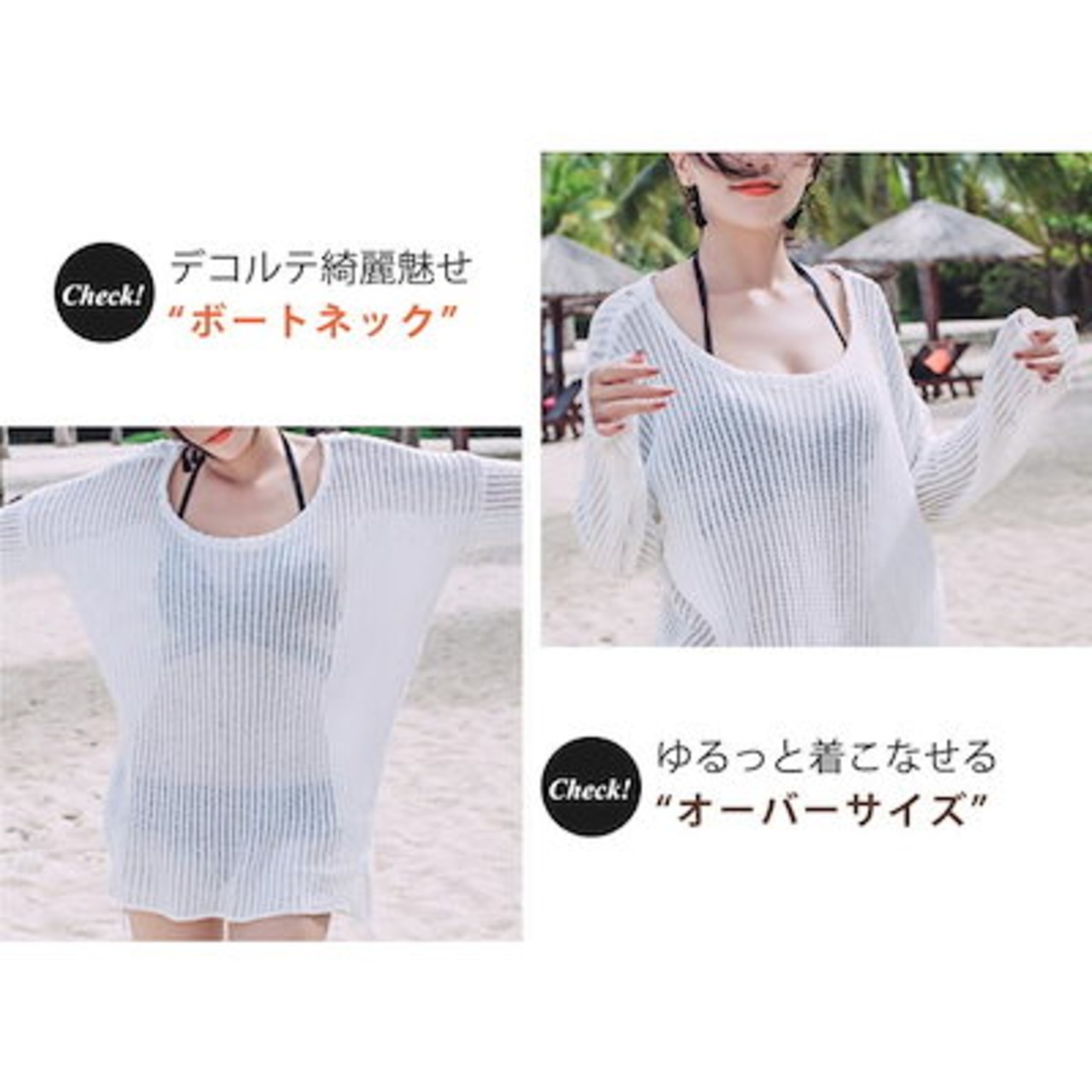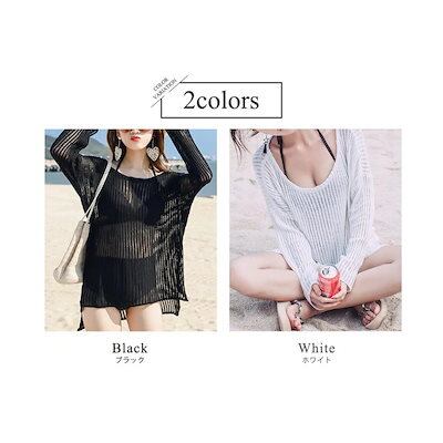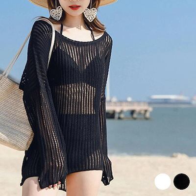 Tシャツ トップス レディース 水着の上から 長袖 クロシェ編み ニット オーバー 体型カバー