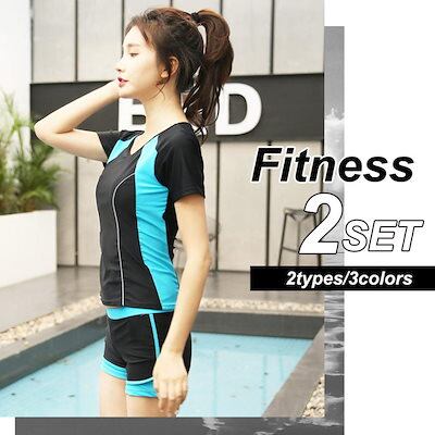 フィットネス 水着 レディース 2点セット 20代 30代 40代 50代 ミセス ママ水着 体型カバー 大きい