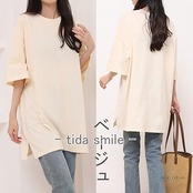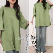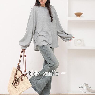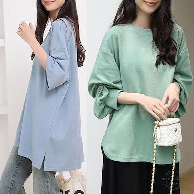 tシャツ レディース 長袖 五分袖 七分袖 2タイプ 丸首 カットソー チュニック パフスリーブ プルオーバー ロングT ティーシャツ トップス ビッグシルエット