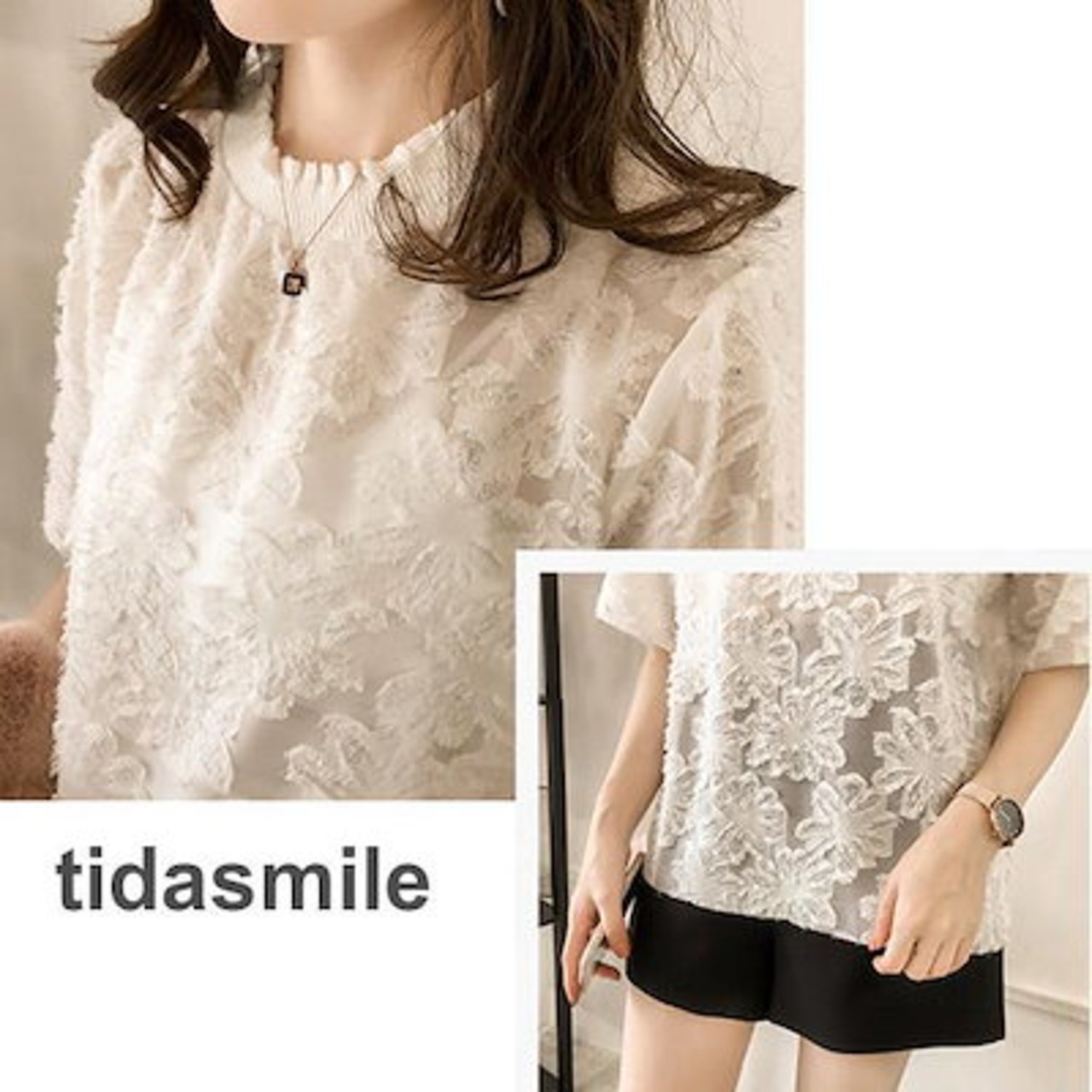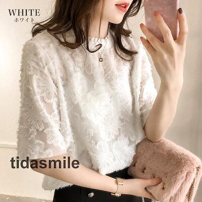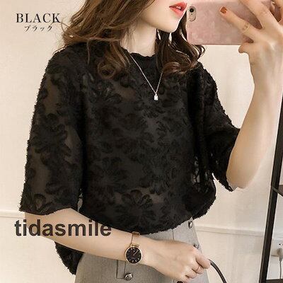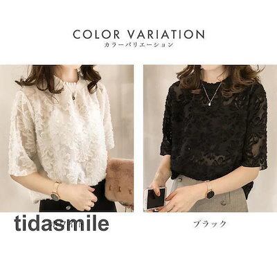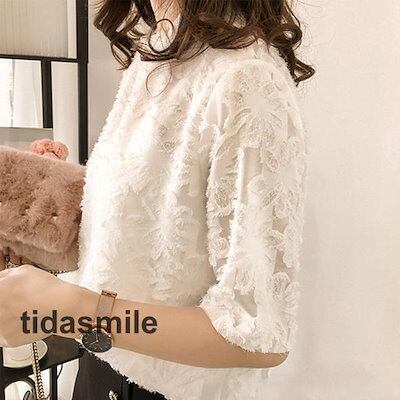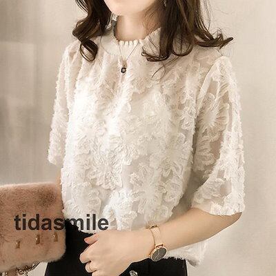Tシャツ 総レース レディース トップス ブラウス 半袖 透け感 シアー 花柄 カットソー ハイネック 上品 レース 総柄 お呼ばれ フォーマル 夏