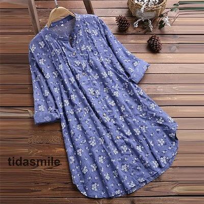 チュニック レディース ワンピース シャツワンピース ブラウス シャツ 長袖 シャツ 薄手 30代 40代 50代 夏 ゆったり 花柄 可愛い