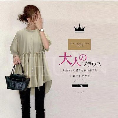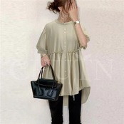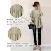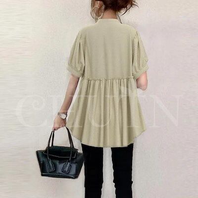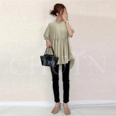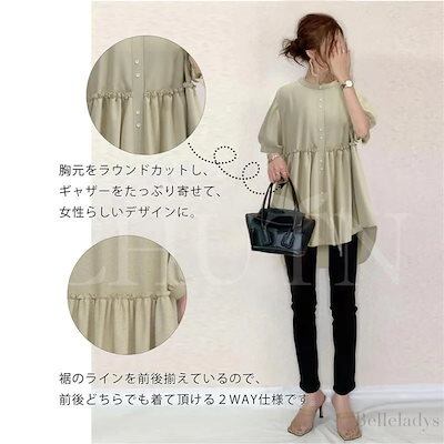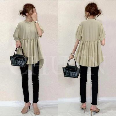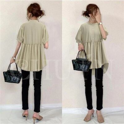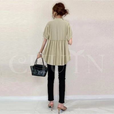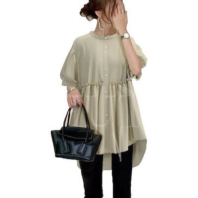 シャツ ブラウス 半袖 ペプラムパフスリーブブラウス フリル レディース トップス 夏ブラウス ボリューム袖 前後差 不規則 ゆったり 上品大人お洒落カワイイ