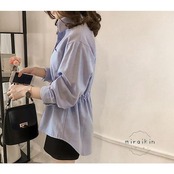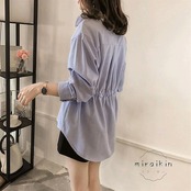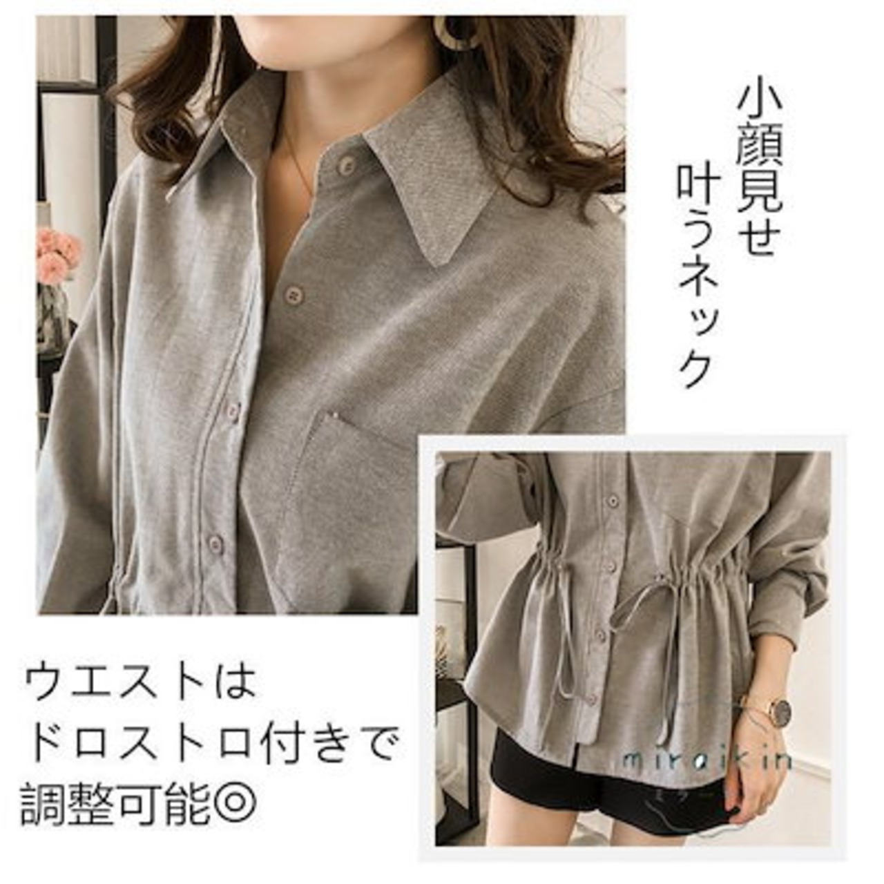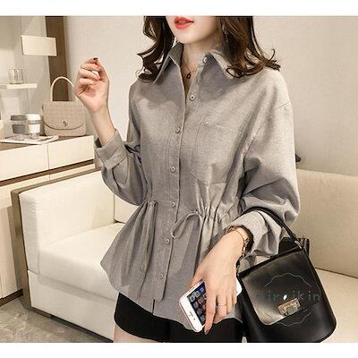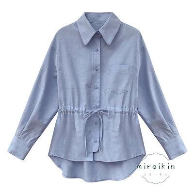 高級な質感 シャツ レディース 長袖 綿混紡 大人 秋 春 トップス 20代 30代 40代 50代 ママ 母 OL 羽織り 前開き 韓国ファッション ドロスト 紐 ラウンド裾 無地