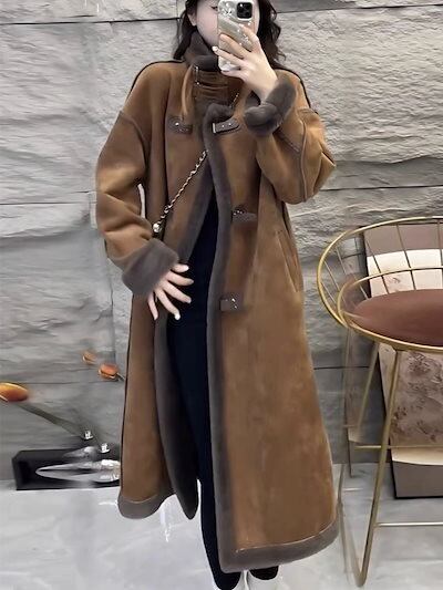 【2枚購入で 2oo円OFF!】秋冬 新作 毛皮コート 防寒 大きいサイズ ラムズフリース 暖かい ゆったり おしゃれ 裏起毛 厚手 アウター トップス セミロング丈 レディース 人工 AWアウター