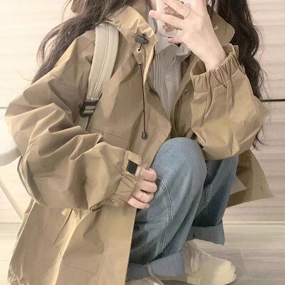 【本日限定】秋 新作 学生 マウンテンパーカー アウター レインコート ブルゾン レディース トレンチコート 大人っぽチェスターコ アウター 秋 ジャケット フード付き 軽量 通気