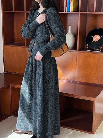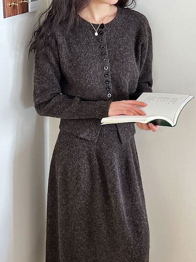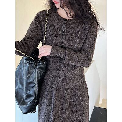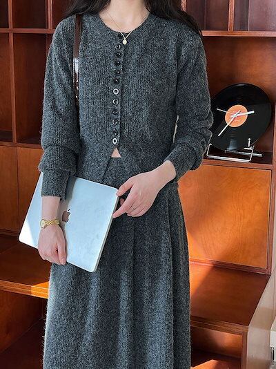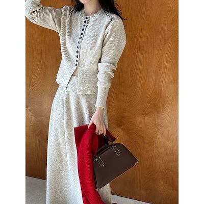 【本日限定】りのいい生地 レディースセットアップ ニットカーディガン 柔らかで肌触 スカートニット 二点セット 気質 セット セットアップ