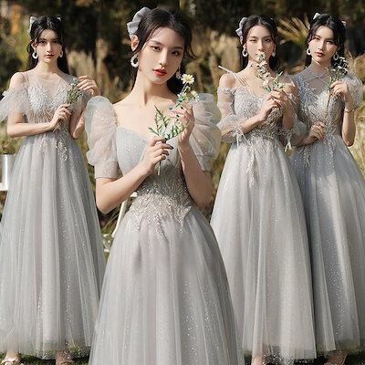 2枚購入で4OO円OFF ! !パーティードレス 大きいサイズ 高級感 成人式 結婚式ドレス 誕生日 花嫁 司会パーティードレス一 Vネック/韓国ファッション/ロングワンピース ブライズメイド服母の日